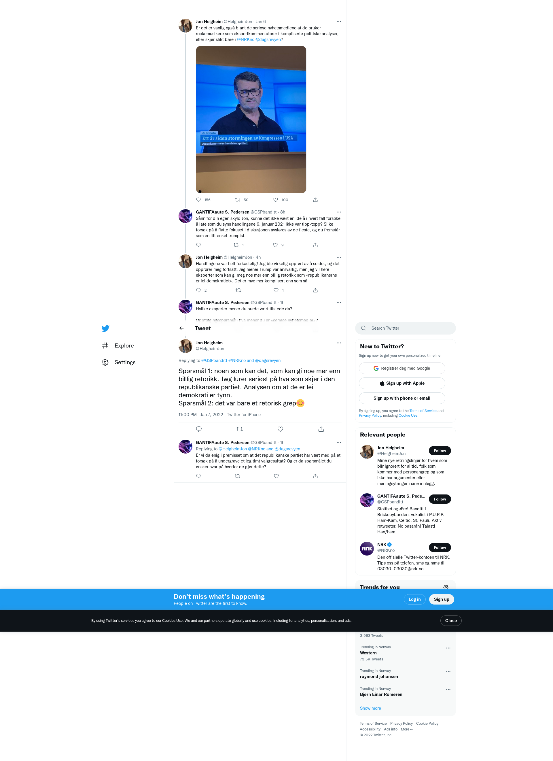 @GSPbanditt @NRKno @dagsrevyen Spørsmål 1: noen som kan det, som kan gi noe mer enn billlig retorikk. Jwg lurer seriøst på hva som skjer i den republikanske partiet. Analysen om at de er lei demokrati er tynn.