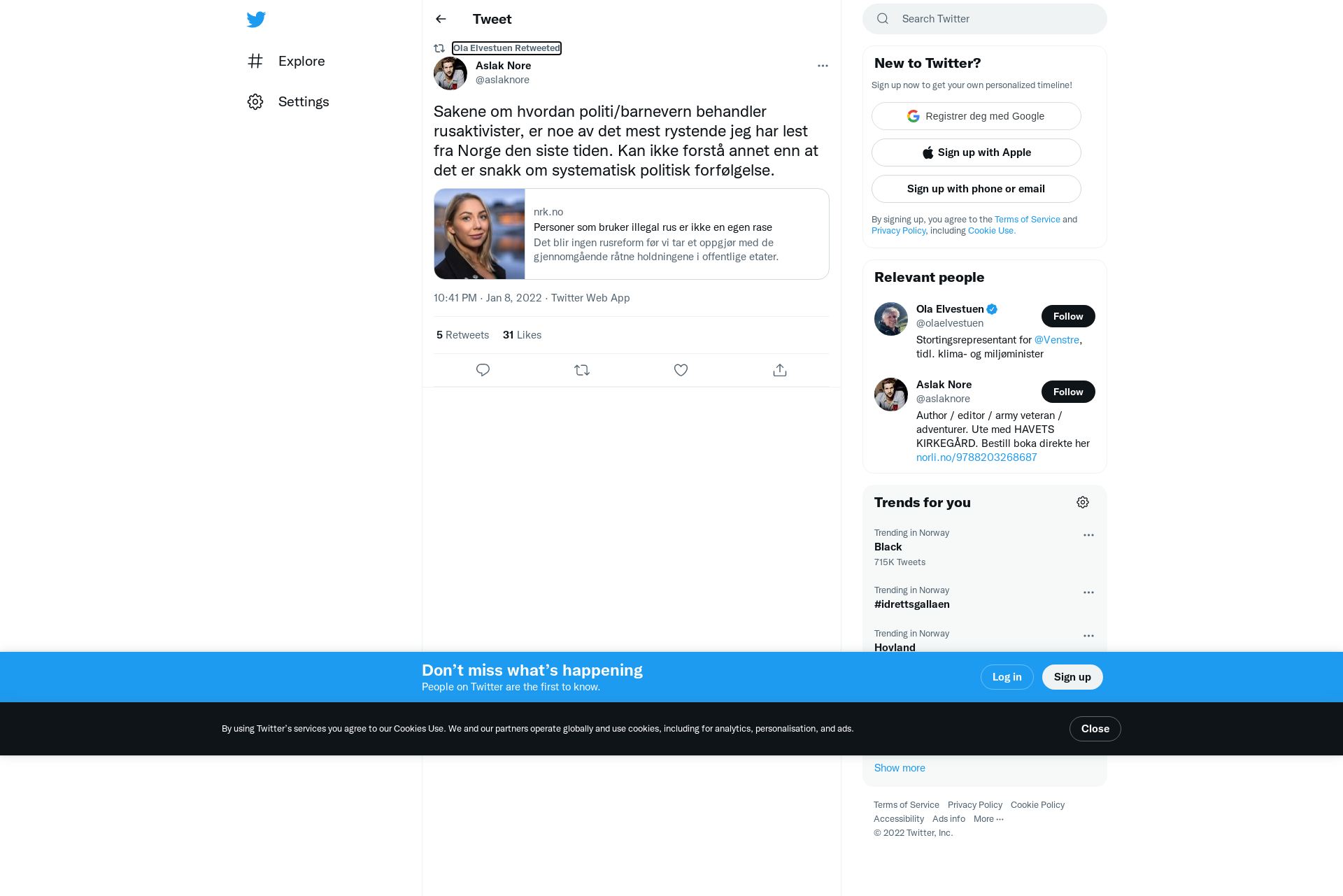 RT @aslaknore: Sakene om hvordan politi/barnevern behandler rusaktivister, er noe av det mest rystende jeg har lest fra Norge den siste tiden. Kan ikke forstå annet enn at det er snakk om systematisk politisk forfølgelse. https://t.co/L4pZPE55Ld