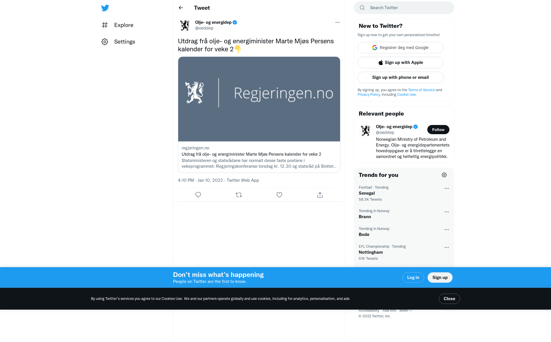 Utdrag frå olje- og energiminister Marte Mjøs Persens kalender for veke 2👇 https://t.co/M9Cnz0mjUw