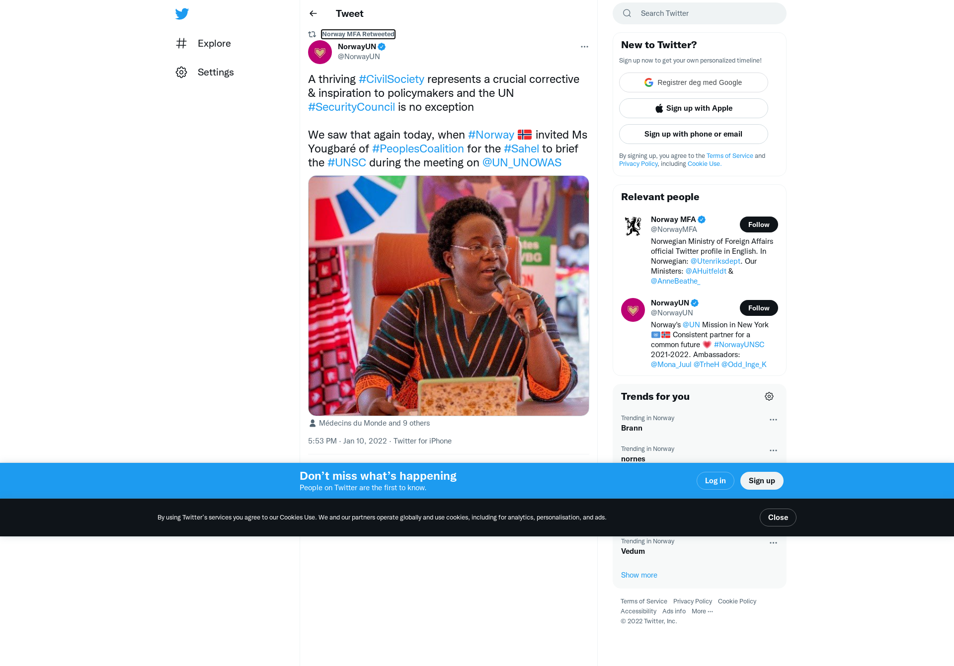 We saw that again today, when #Norway 🇳🇴 invited Ms Yougbaré of #PeoplesCoalition for the #Sahel to brief the #UNSC during the meeting on @UN_UNOWAS https://t.co/kD66GSQmqb