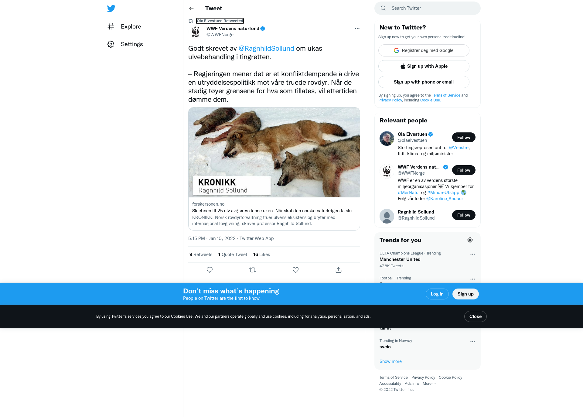 RT @WWFNorge: Godt skrevet av @RagnhildSollund om ukas ulvebehandling i tingretten. – Regjeringen mener det er et konfliktdempende å drive…