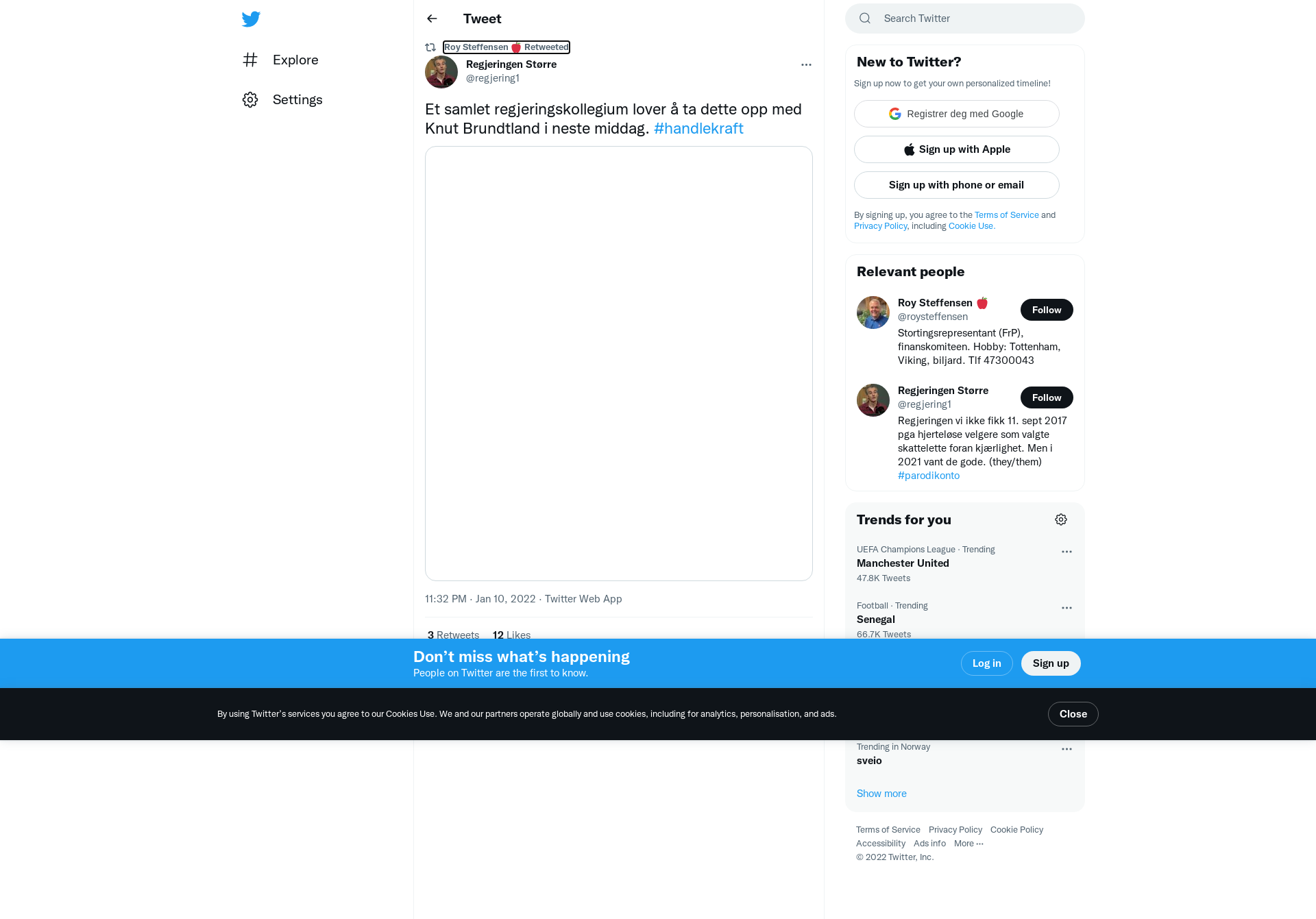 RT @regjering1: Et samlet regjeringskollegium lover å ta dette opp med Knut Brundtland i neste middag. #handlekraft https://t.co/zZQMBlNIRE