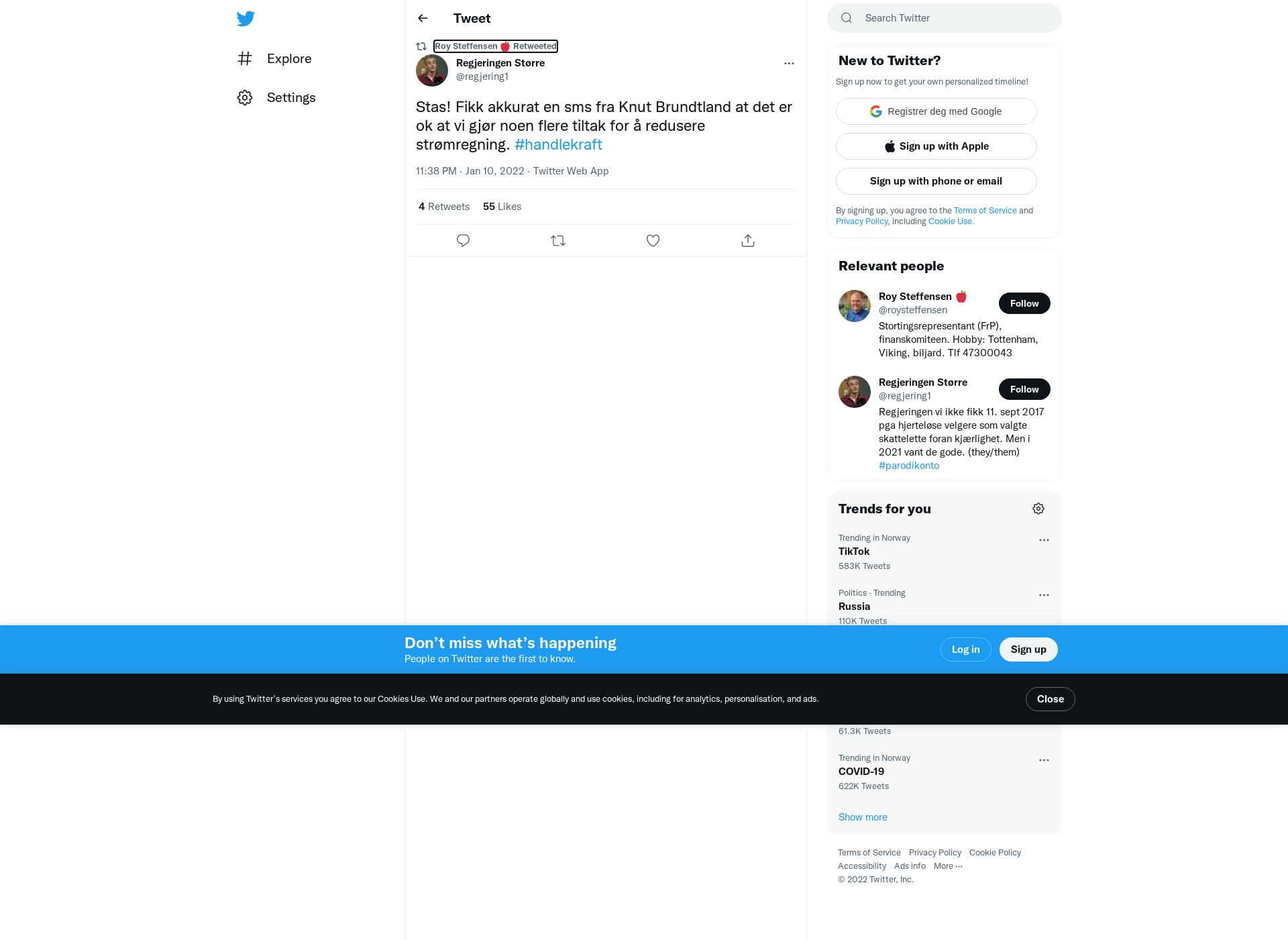 RT @regjering1: Stas! Fikk akkurat en sms fra Knut Brundtland at det er ok at vi gjør noen flere tiltak for å redusere strømregning. #handlekraft