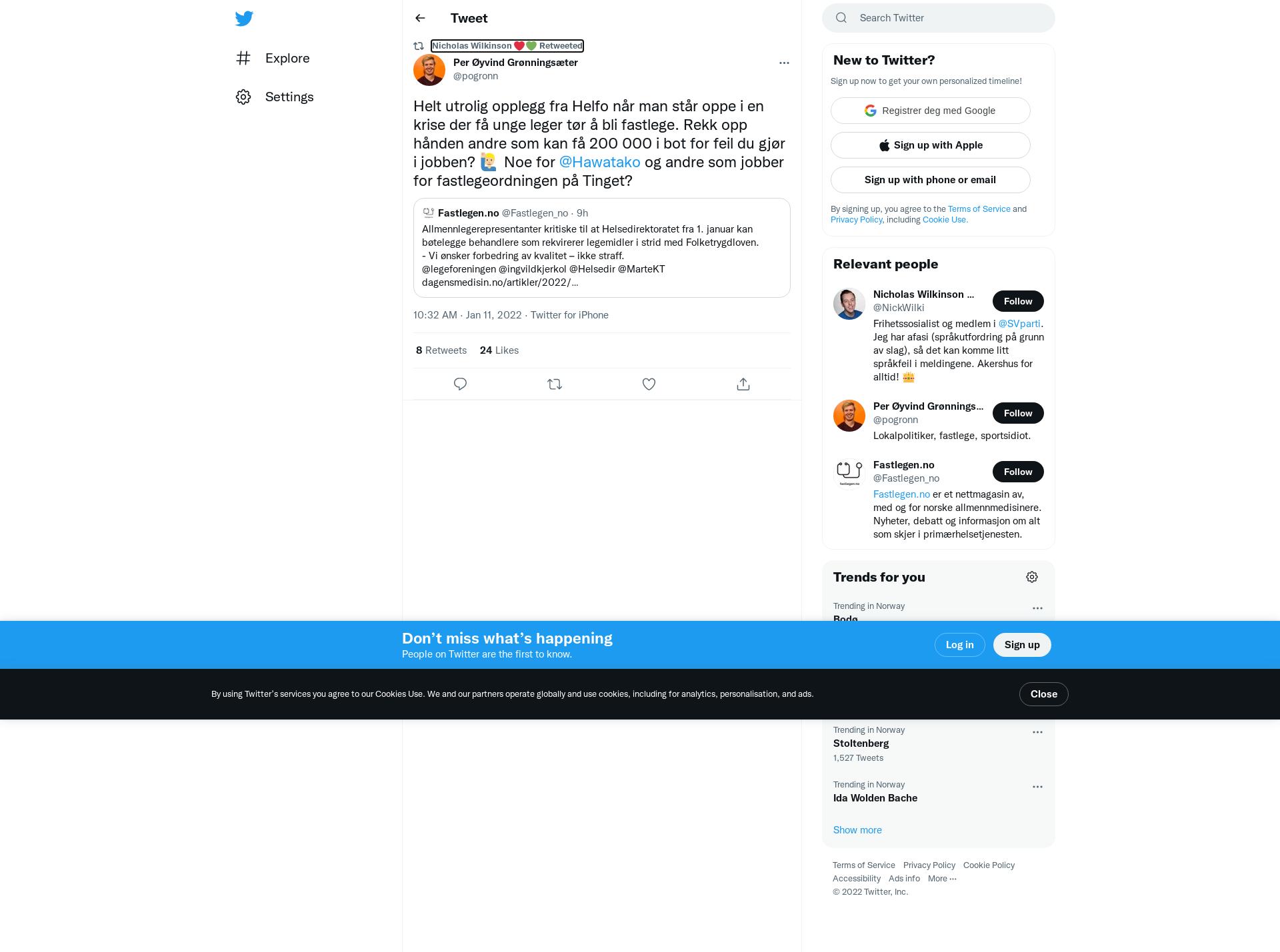 RT @pogronn: Helt utrolig opplegg fra Helfo når man står oppe i en krise der få unge leger tør å bli fastlege. Rekk opp hånden andre som kan få 200 000 i bot for feil du gjør i jobben? 🙋🏼♂️ Noe for @Hawatako og andre som jobber for fastlegeordningen på Tinget?