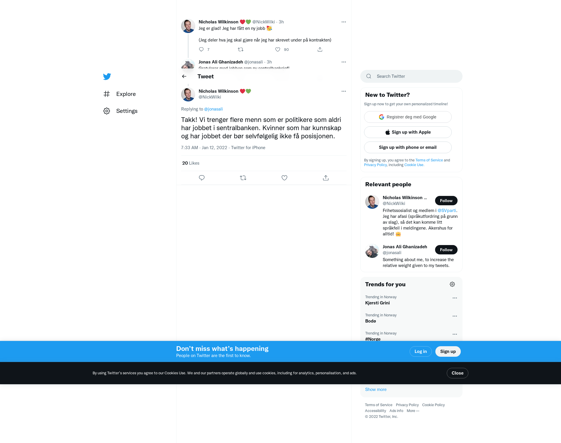 @jonasali Takk! Vi trenger flere menn som er politikere som aldri har jobbet i sentralbanken. Kvinner som har kunnskap og har jobbet der bør selvfølgelig ikke få posisjonen.