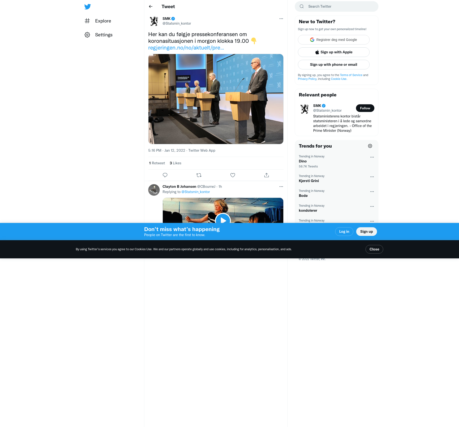 Her kan du følgje pressekonferansen om koronasituasjonen i morgon klokka 19.00 👇 https://t.co/PGapuVNLpH https://t.co/7TmYjOiYx0