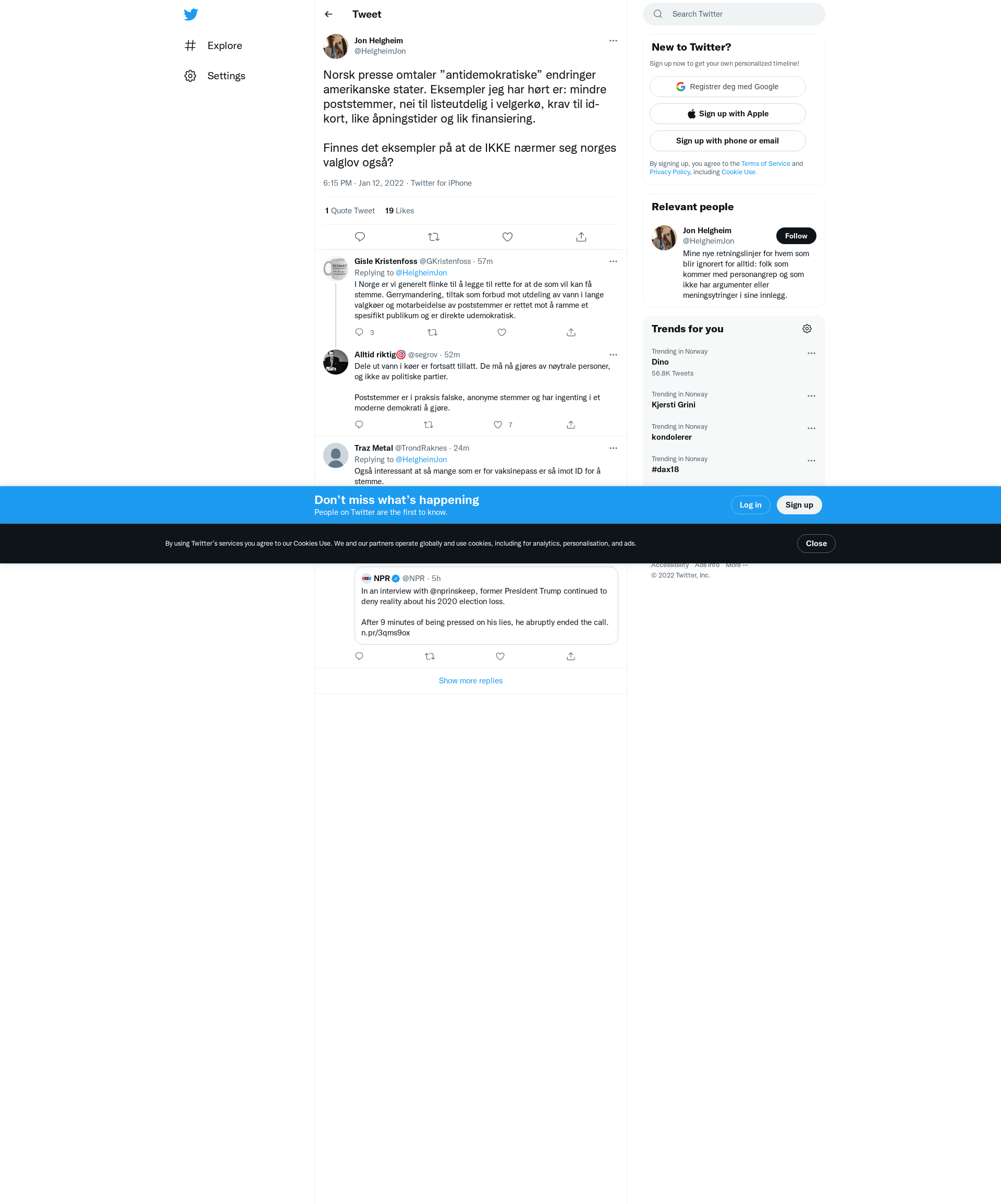 Norsk presse omtaler ”antidemokratiske” endringer amerikanske stater. Eksempler jeg har hørt er: mindre poststemmer, nei til listeutdelig i velgerkø, krav til id-kort, like åpningstider og lik finansiering.