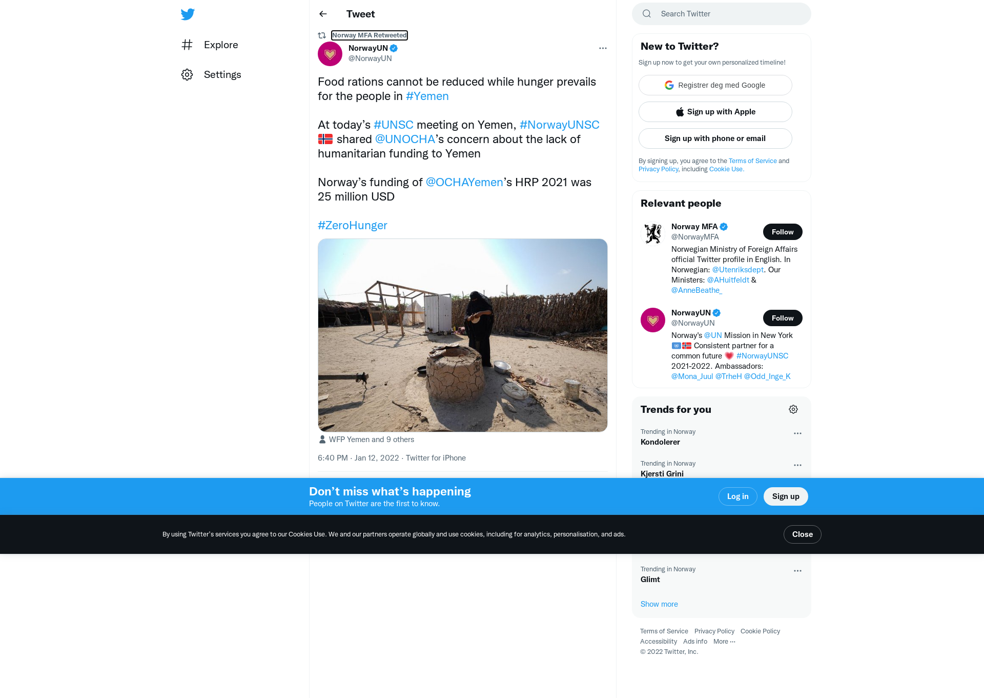 RT @NorwayUN: Food rations cannot be reduced while hunger prevails for the people in #Yemen At today’s #UNSC meeting on Yemen, #NorwayUNSC…