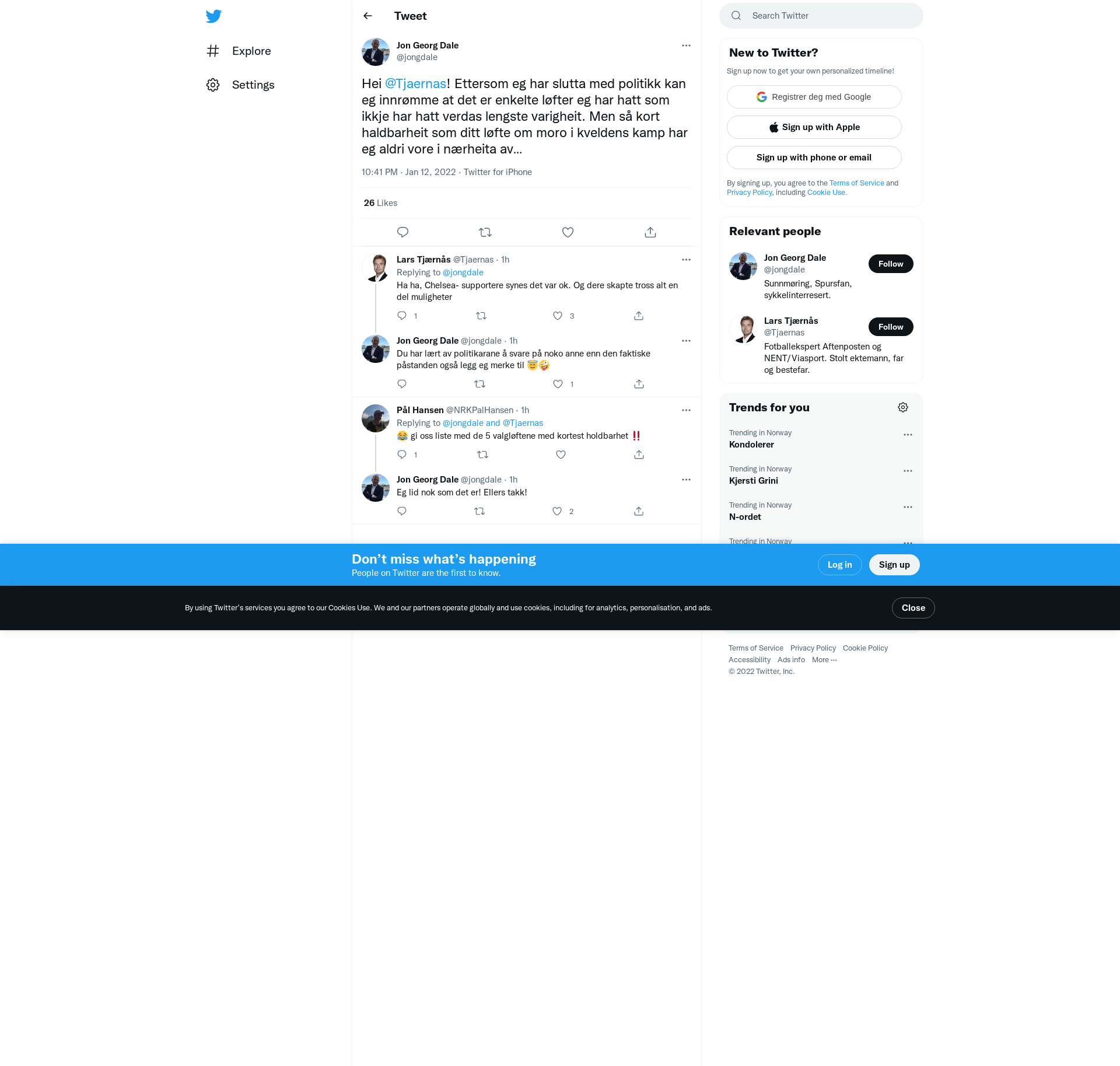 Hei @Tjaernas! Ettersom eg har slutta med politikk kan eg innrømme at det er enkelte løfter eg har hatt som ikkje har hatt verdas lengste varigheit. Men så kort haldbarheit som ditt løfte om moro i kveldens kamp har eg aldri vore i nærheita av…
