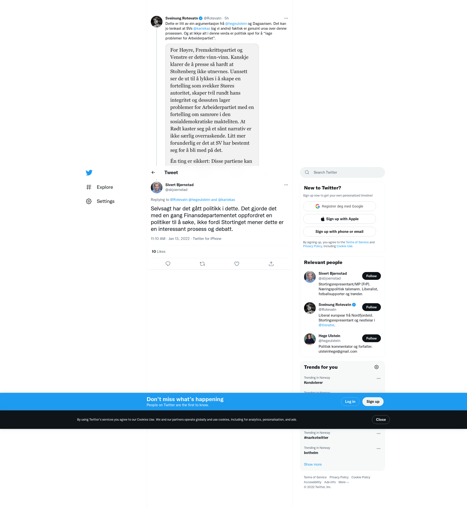 @Rotevatn @hegeulstein @kariekas Selvsagt har det gått politikk i dette. Det gjorde det med en gang Finansdepartementet oppfordret en politiker til å søke, ikke fordi Stortinget mener dette er en interessant prosess og debatt.