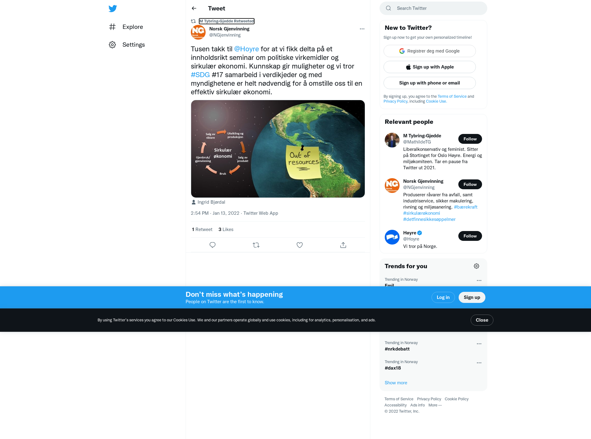RT @NGjenvinning: Tusen takk til @Hoyre for at vi fikk delta på et innholdsrikt seminar om politiske virkemidler og sirkulær økonomi. Kunnskap gir muligheter og vi tror #SDG #17 samarbeid i verdikjeder og med myndighetene er helt nødvendig for å omstille oss til en effektiv sirkulær økonomi. https://t.co/sTy2GCxUyA