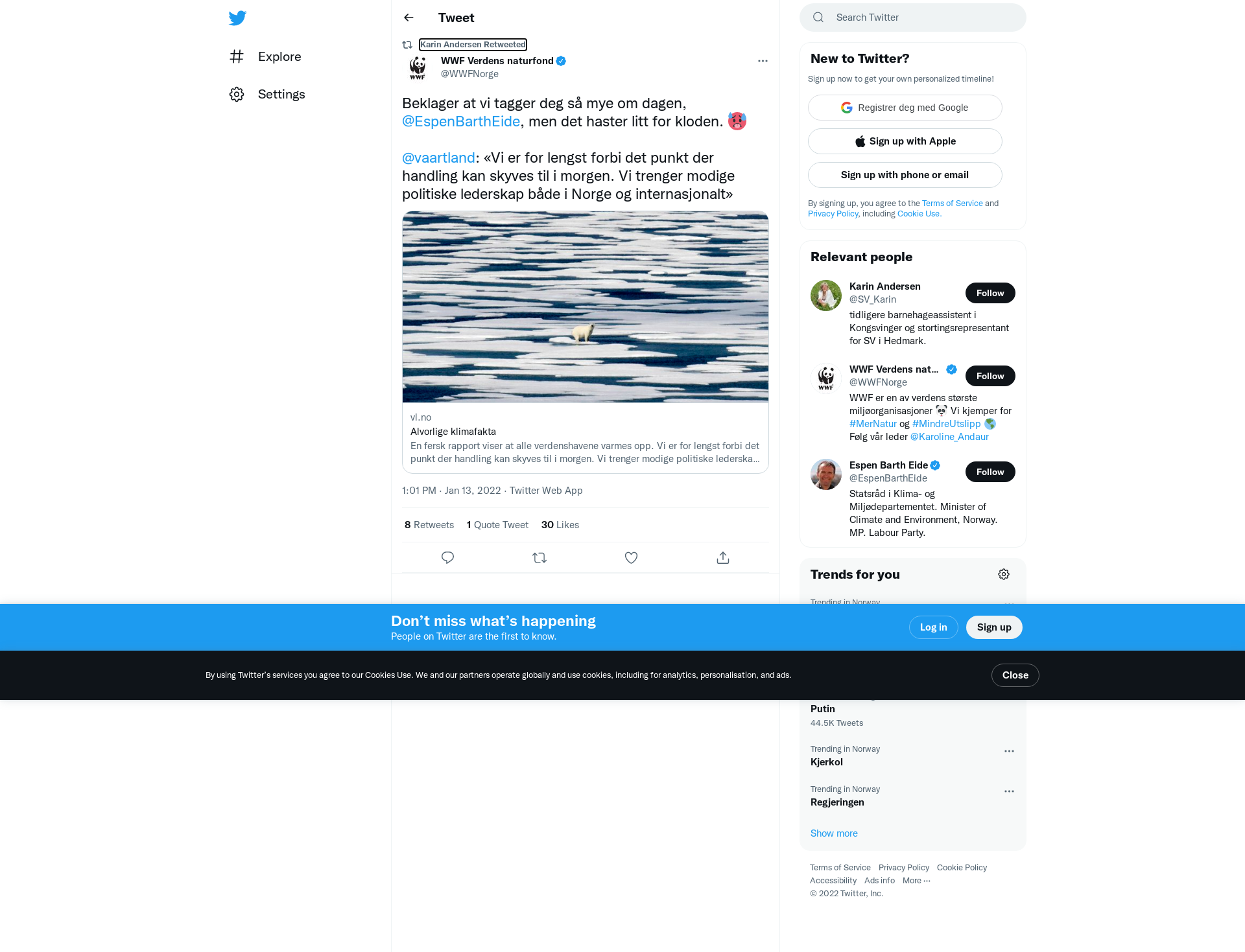 RT @WWFNorge: Beklager at vi tagger deg så mye om dagen, @EspenBarthEide, men det haster litt for kloden. 🥵 @vaartland: «Vi er for lengst…