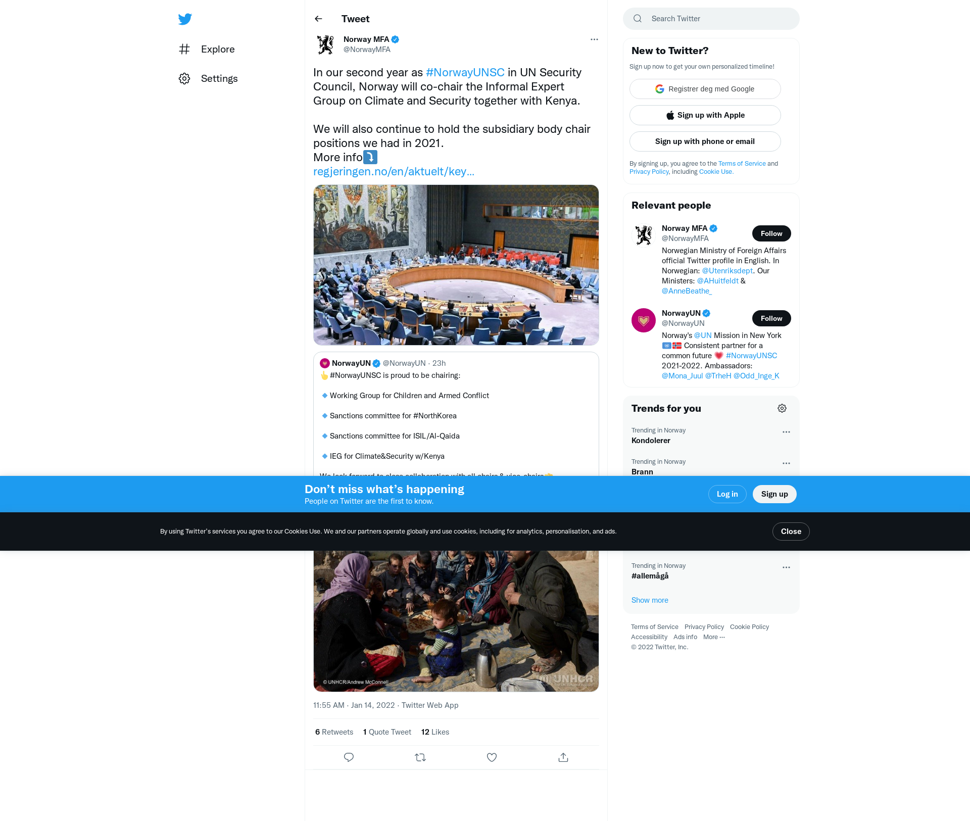 In its second year as a member of the UN Security Council, Norway will co-chair the Informal Expert Group on Climate and Security together with Kenya. Norway will also continue to hold the subsidiary body chair positions it was given in 2021.