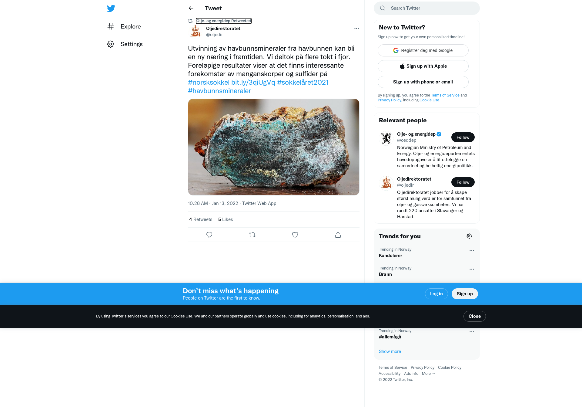 RT @oljedir: Utvinning av havbunnsmineraler fra havbunnen kan bli en ny næring i framtiden. Vi deltok på flere tokt i fjor. Foreløpige resultater viser at det finns interessante forekomster av manganskorper og sulfider på #norsksokkel https://t.co/aalVHMyzyC #sokkelåret2021 #havbunnsmineraler https://t.co/yuKaaxthzM