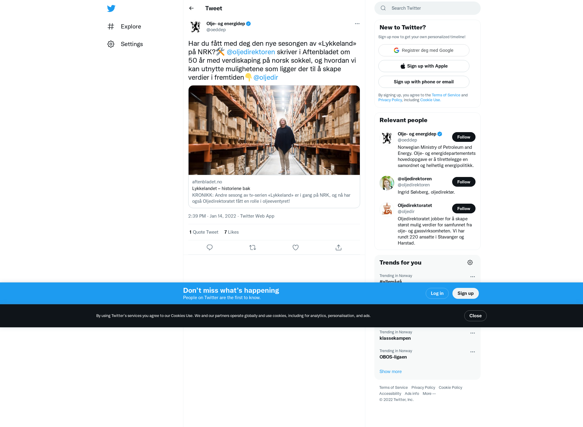 Har du fått med deg den nye sesongen av «Lykkeland» på NRK?🛠 @oljedirektoren skriver i Aftenbladet om 50 år med verdiskaping på norsk sokkel, og hvordan vi kan utnytte mulighetene som ligger der til å skape verdier i fremtiden👇@oljedir https://t.co/igox0yX7GD