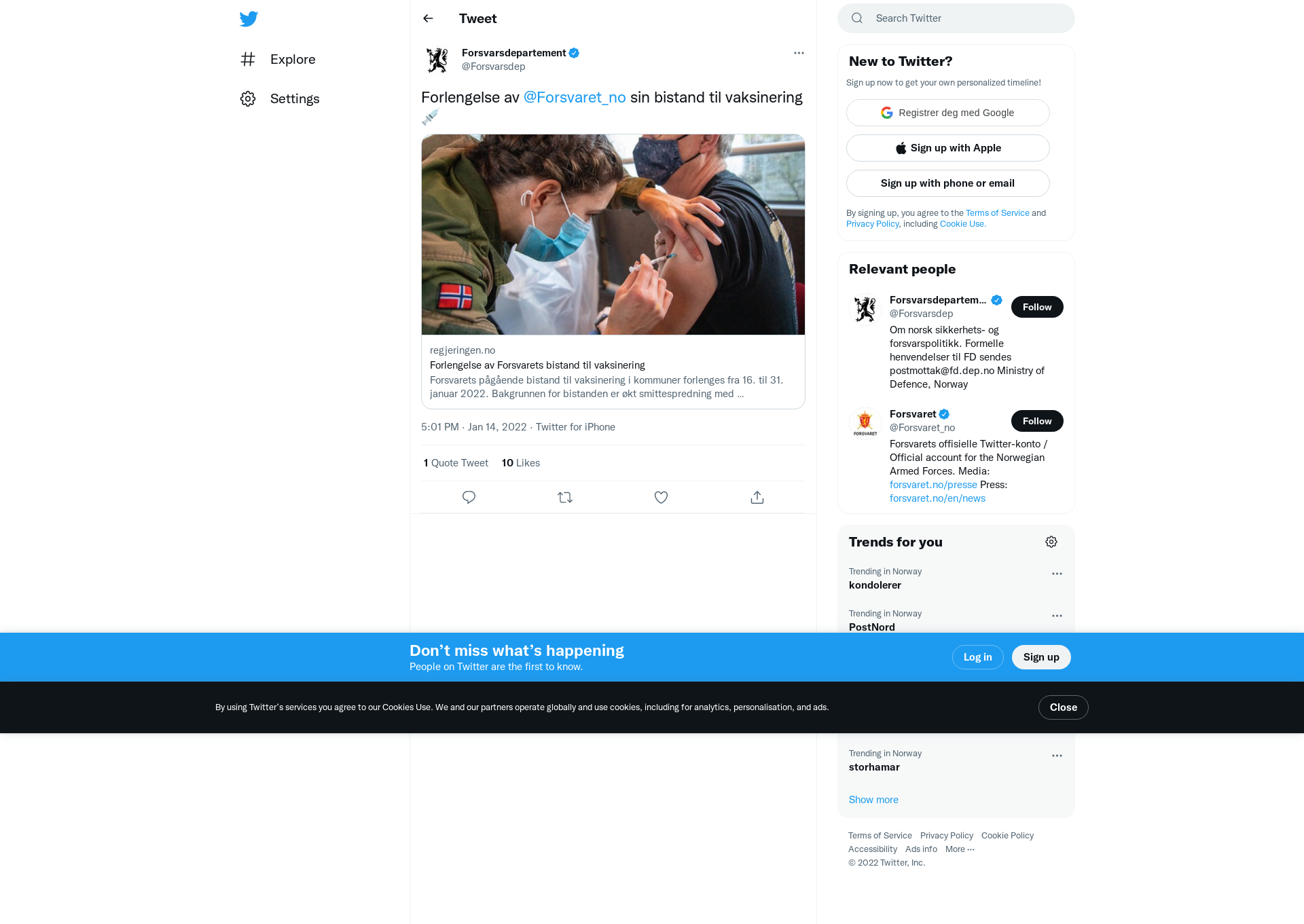 Forsvarets pågående bistand til vaksinering i kommuner forlenges fra 16. til 31. januar 2022. Bakgrunnen for bistanden er økt smittespredning med omikronvarianten og at helsemyndighetene ser det nødvendig med høy vaksinasjonskapasitet også de neste ukene.