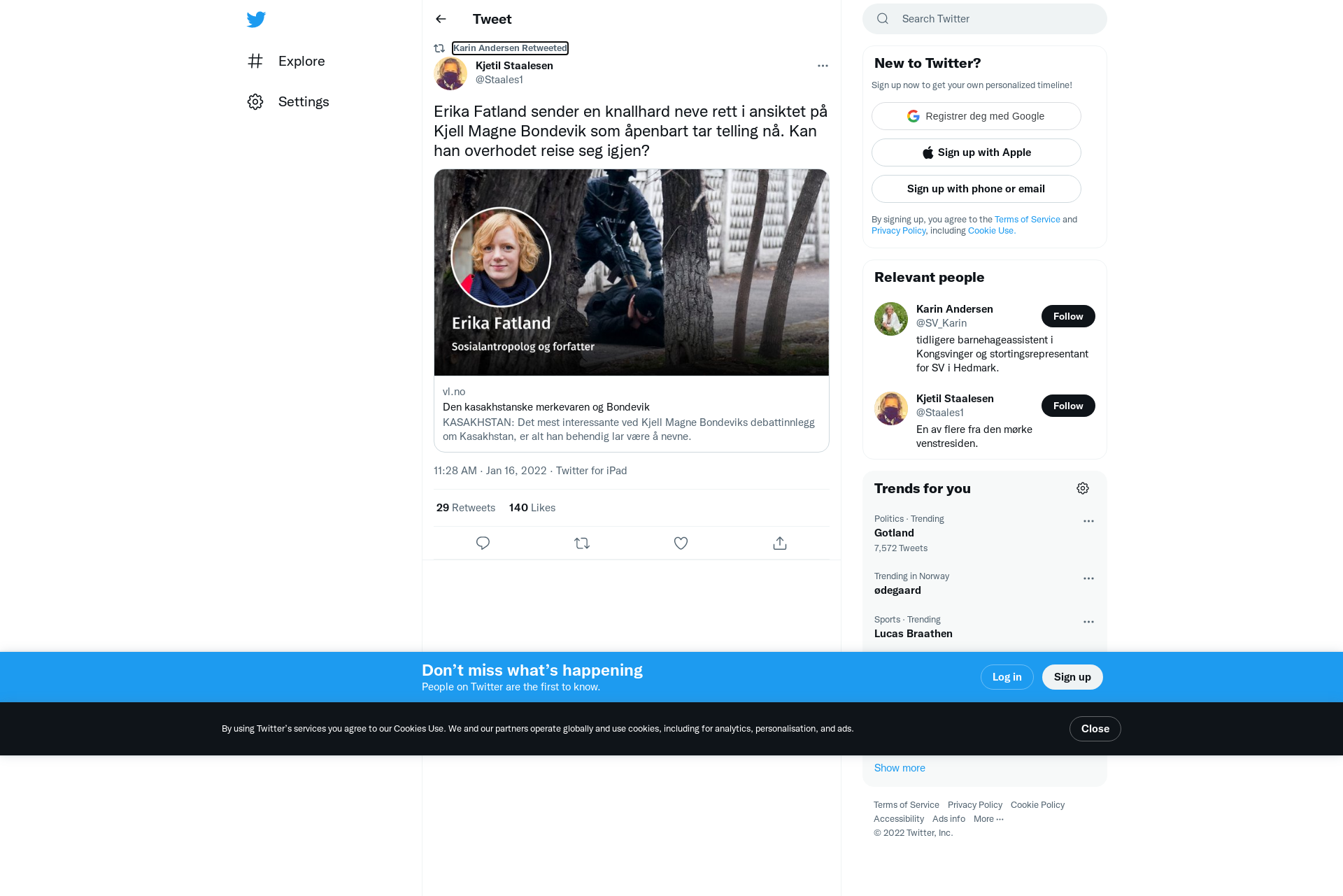 RT @Staales1: Erika Fatland sender en knallhard neve rett i ansiktet på Kjell Magne Bondevik som åpenbart tar telling nå. Kan han overhodet reise seg igjen? https://t.co/yLE1xa6czY