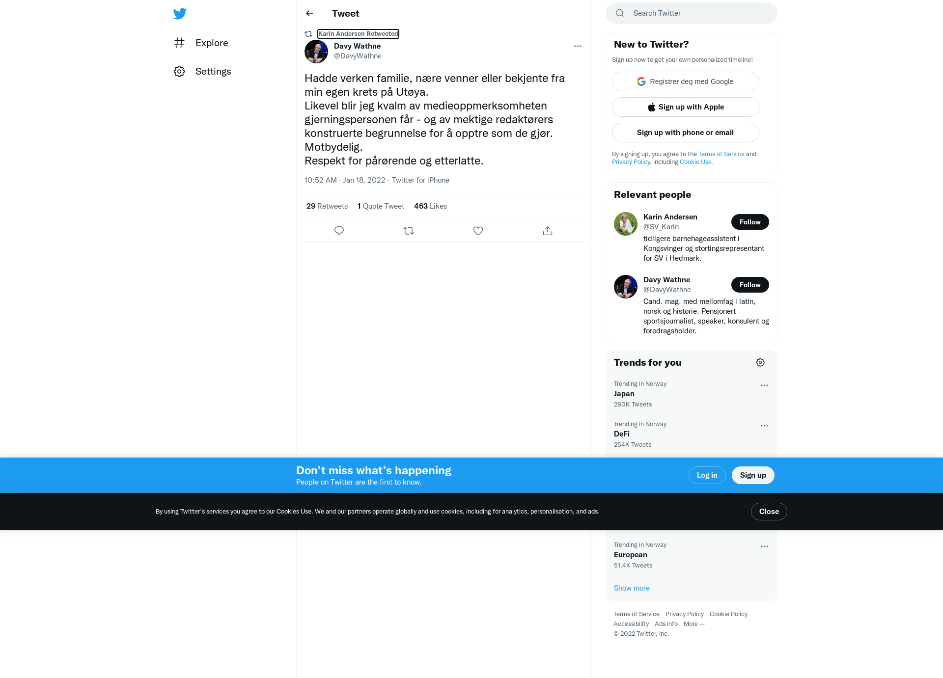 RT @DavyWathne: Hadde verken familie, nære venner eller bekjente fra min egen krets på Utøya. Likevel blir jeg kvalm av medieoppmerksomhet…