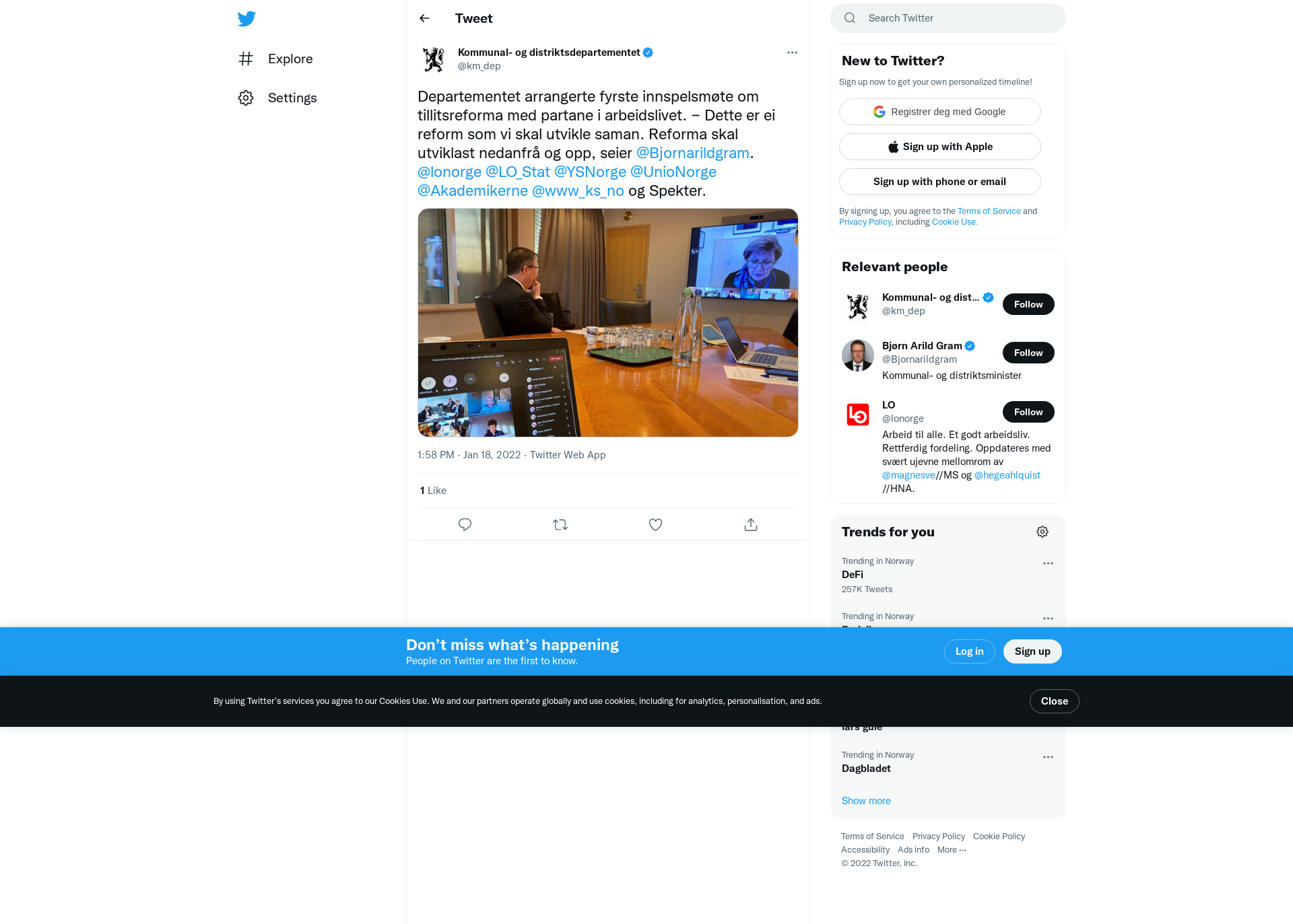 Departementet arrangerte fyrste innspelsmøte om tillitsreforma med partane i arbeidslivet. − Dette er ei reform som vi skal utvikle saman. Reforma skal utviklast nedanfrå og opp, seier @Bjornarildgram. @lonorge @LO_Stat @YSNorge @UnioNorge @Akademikerne @www_ks_no og Spekter. https://t.co/xEmuaj2CbJ