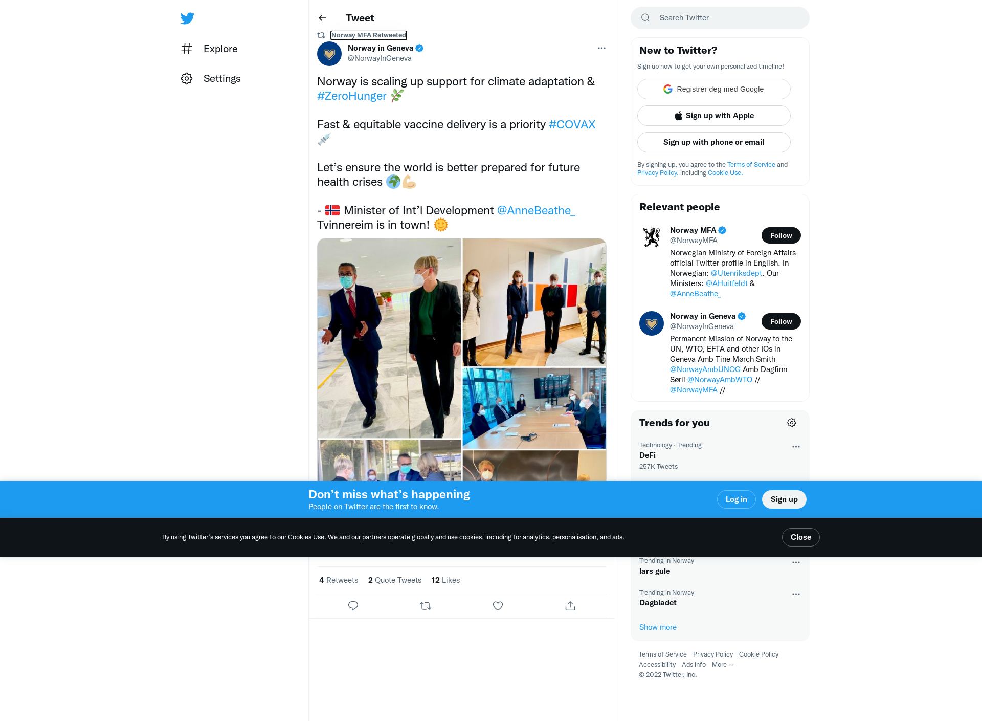 RT @NorwayInGeneva: Norway is scaling up support for climate adaptation & #ZeroHunger 🌿 Fast & equitable vaccine delivery is a priority #C…
