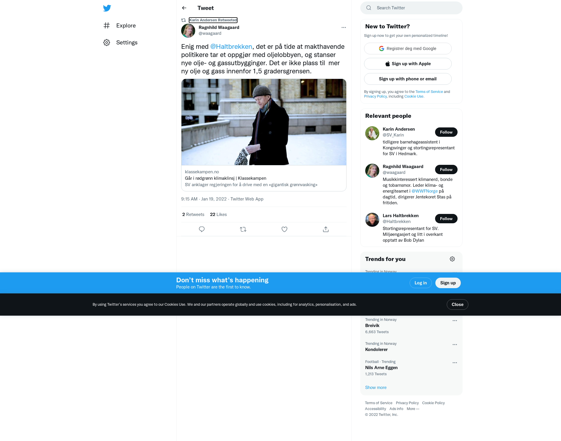 RT @waagaard: Enig med @Haltbrekken, det er på tide at makthavende politikere tar et oppgjør med oljelobbyen, og stanser nye olje- og gassutbygginger. Det er ikke plass til mer ny olje og gass innenfor 1,5 gradersgrensen. https://t.co/dvqpzQ7V6S