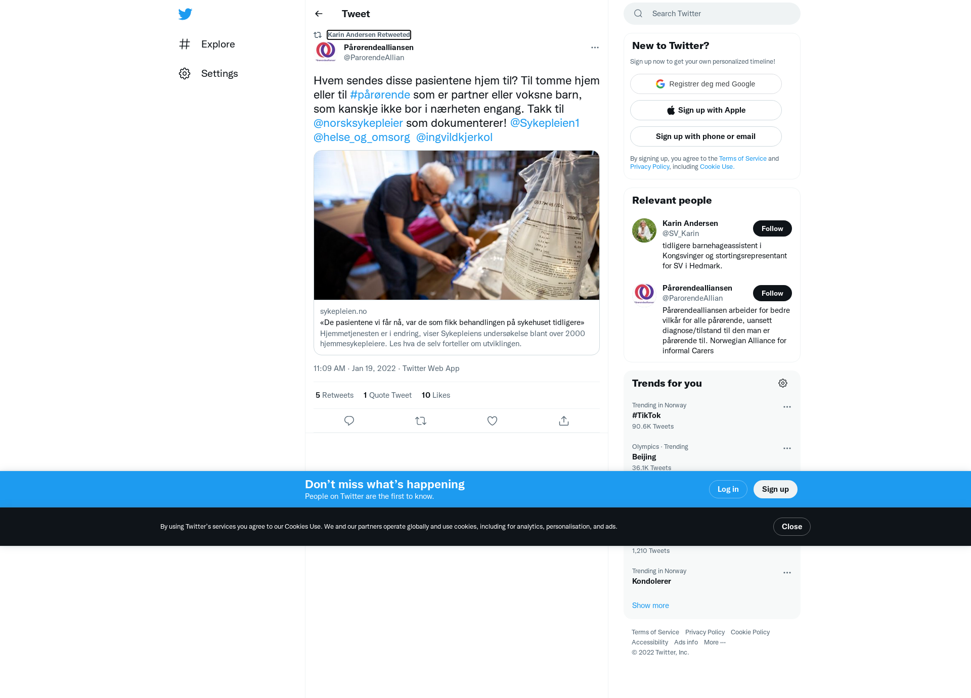 RT @ParorendeAllian: Hvem sendes disse pasientene hjem til? Til tomme hjem eller til #pårørende som er partner eller voksne barn, som kanskje ikke bor i nærheten engang. Takk til @norsksykepleier som dokumenterer! @Sykepleien1 @helse_og_omsorg @ingvildkjerkol https://t.co/ZmbVCYv4ID
