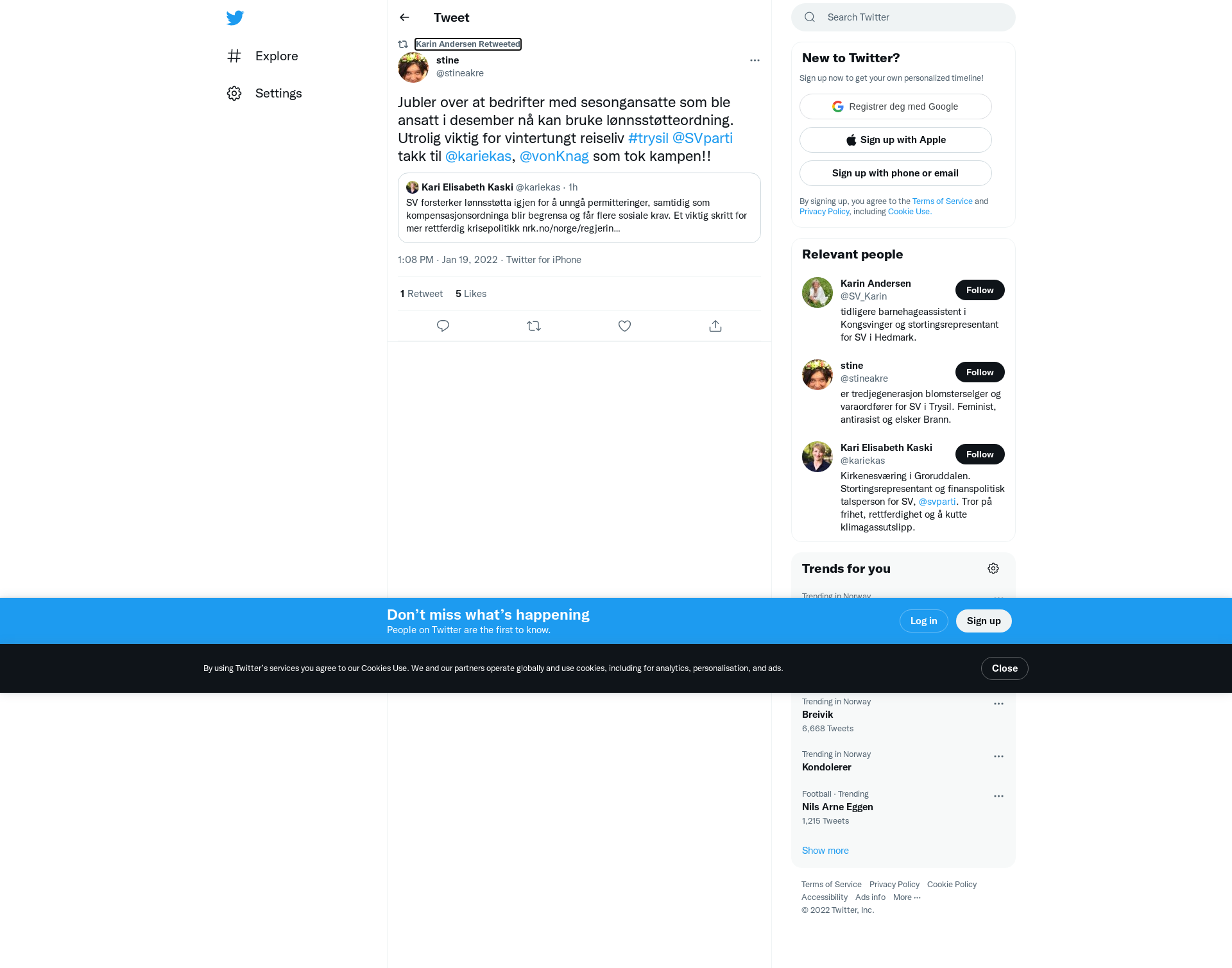 RT @stineakre: Jubler over at bedrifter med sesongansatte som ble ansatt i desember nå kan bruke lønnsstøtteordning. Utrolig viktig for vintertungt reiseliv #trysil @SVparti takk til @kariekas, @vonKnag som tok kampen!!