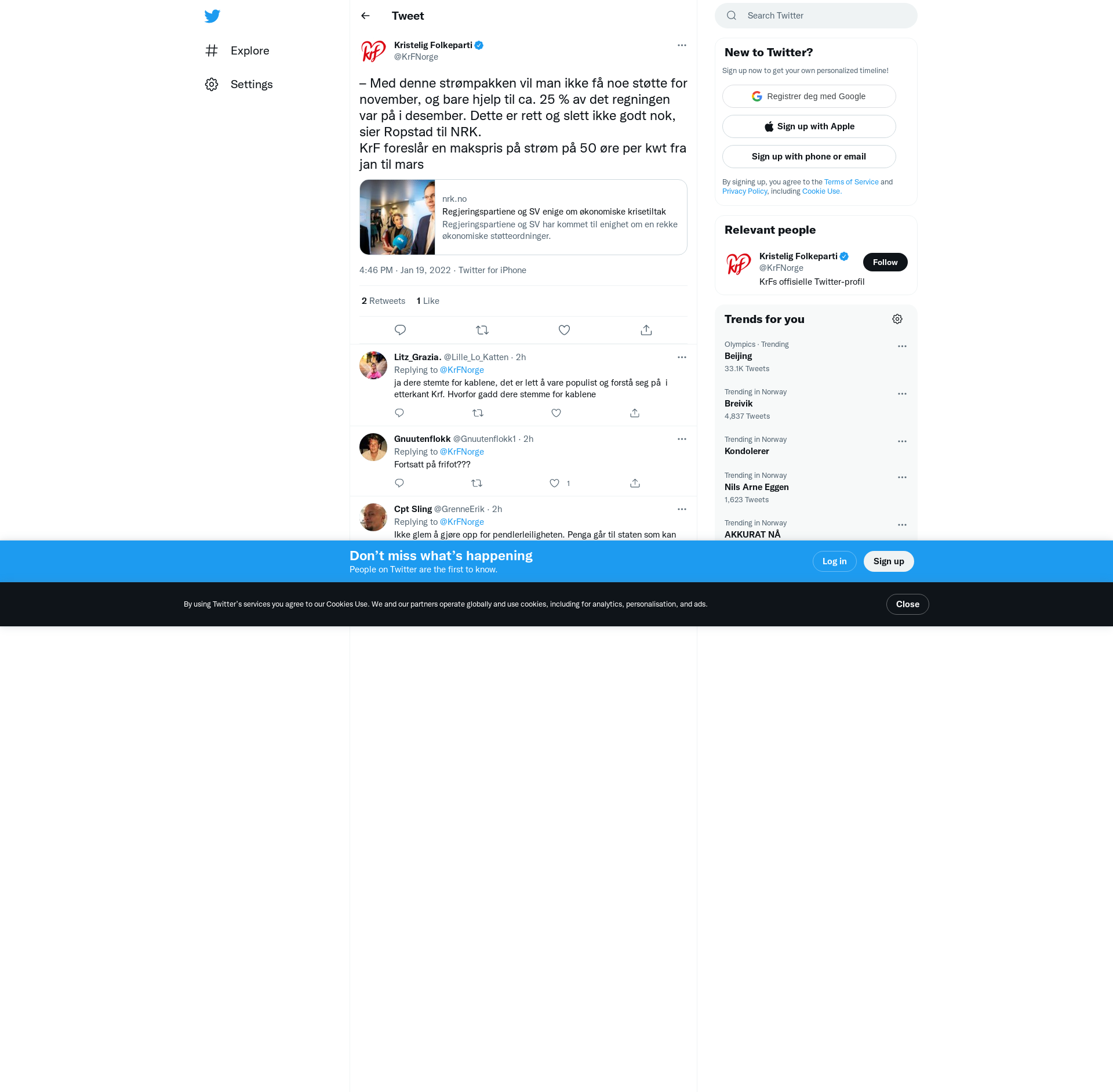 KrF foreslår en makspris på strøm på 50 øre per kwt fra jan til mars https://t.co/WK5VZHpvnK