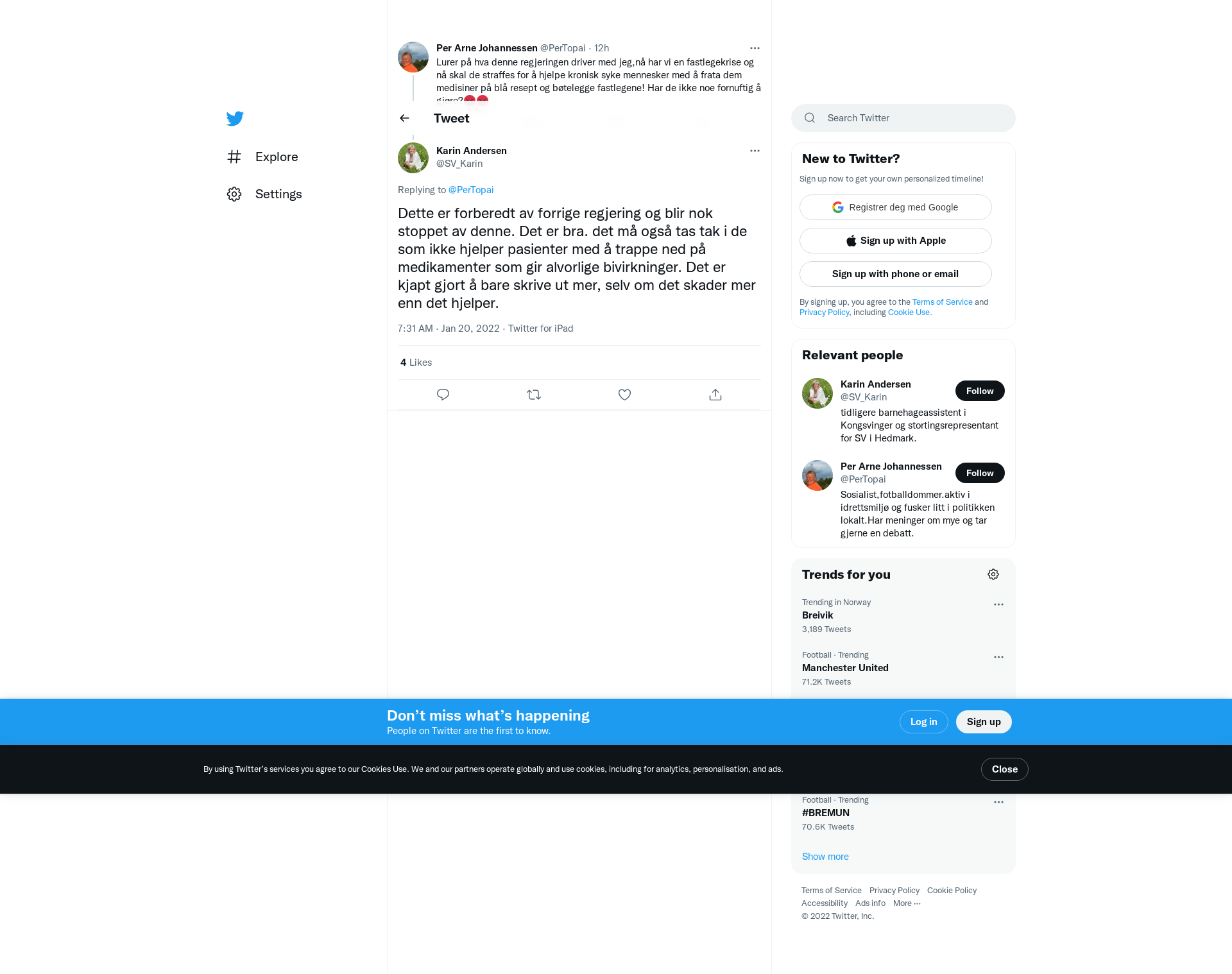 @PerTopai Dette er forberedt av forrige regjering og blir nok stoppet av denne. Det er bra. det må også tas tak i de som ikke hjelper pasienter med å trappe ned på medikamenter som gir alvorlige bivirkninger. Det er kjapt gjort å bare skrive ut mer, selv om det skader mer enn det hjelper.