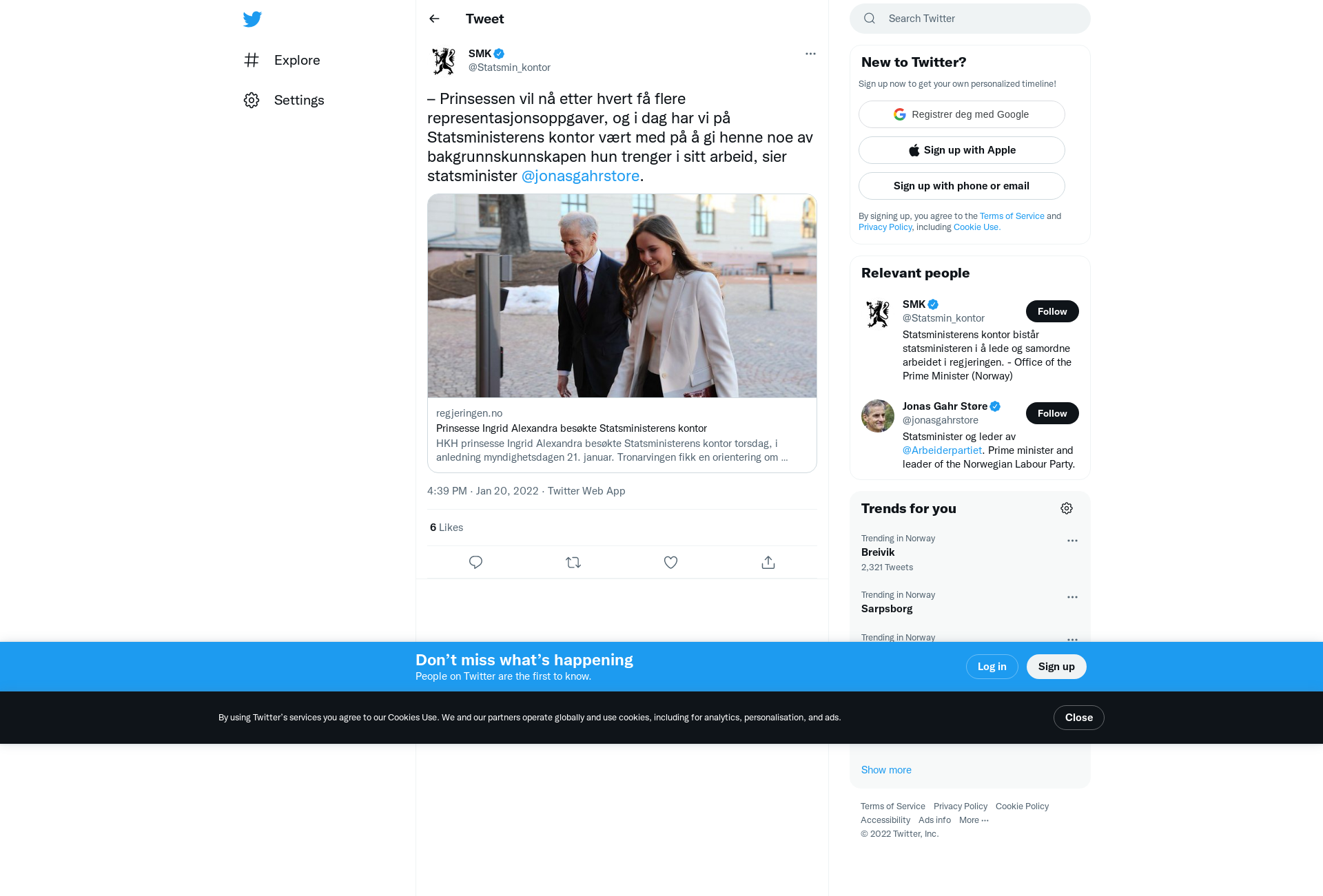 – Prinsessen vil nå etter hvert få flere representasjonsoppgaver, og i dag har vi på Statsministerens kontor vært med på å gi henne noe av bakgrunnskunnskapen hun trenger i sitt arbeid, sier statsminister @jonasgahrstore.