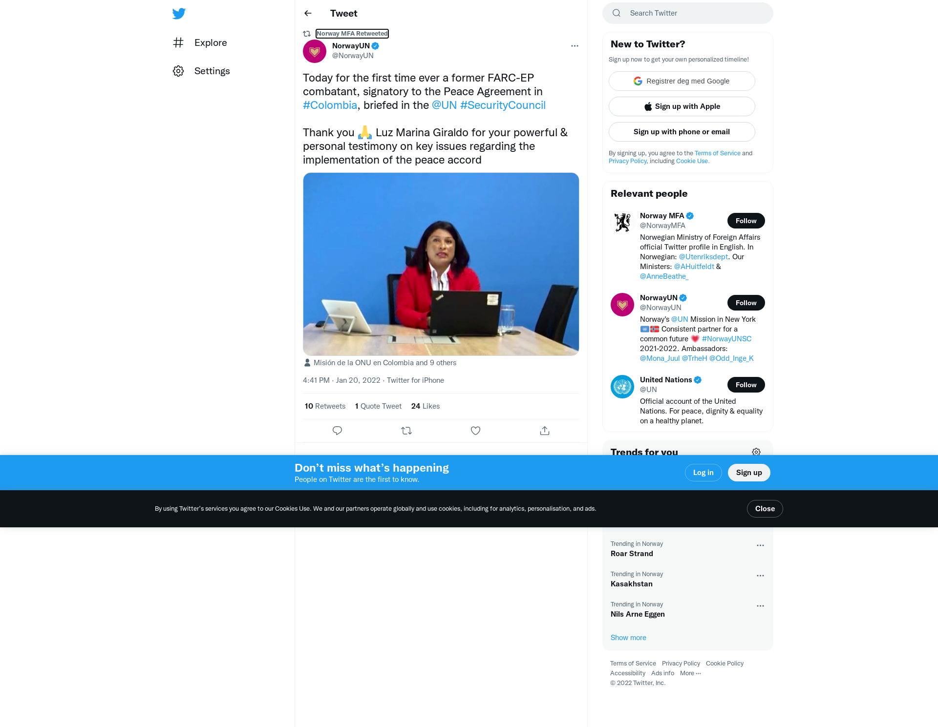 RT @NorwayUN: Today for the first time ever a former FARC-EP combatant, signatory to the Peace Agreement in #Colombia, briefed in the @UN #SecurityCouncil