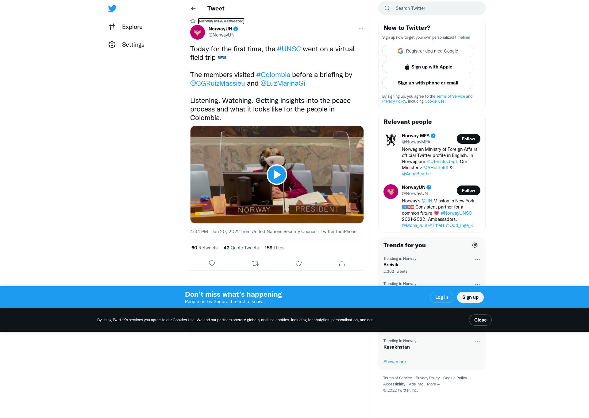 RT @NorwayUN: Today for the first time, the #UNSC went on a virtual field trip 👓 The members visited #Colombia before a briefing by @CGRu…