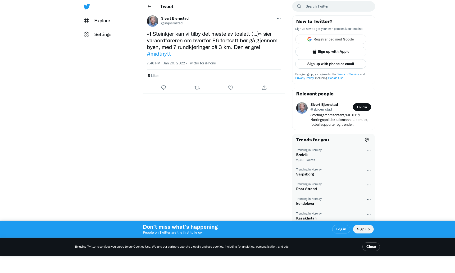 «I Steinkjer kan vi tilby det meste av toalett (…)» sier varaordføreren om hvorfor E6 fortsatt bør gå gjennom byen, med 7 rundkjøringer på 3 km. Den er grei #midtnytt