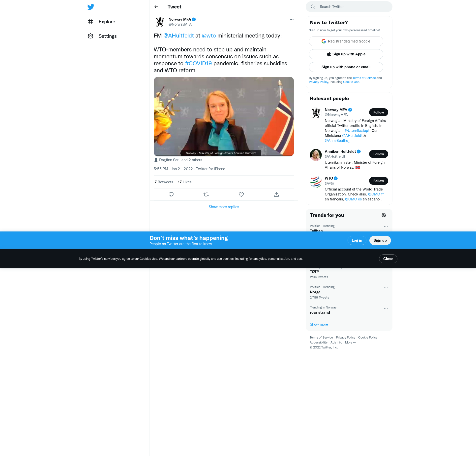 FM @AHuitfeldt at @wto ministerial meeting today:
