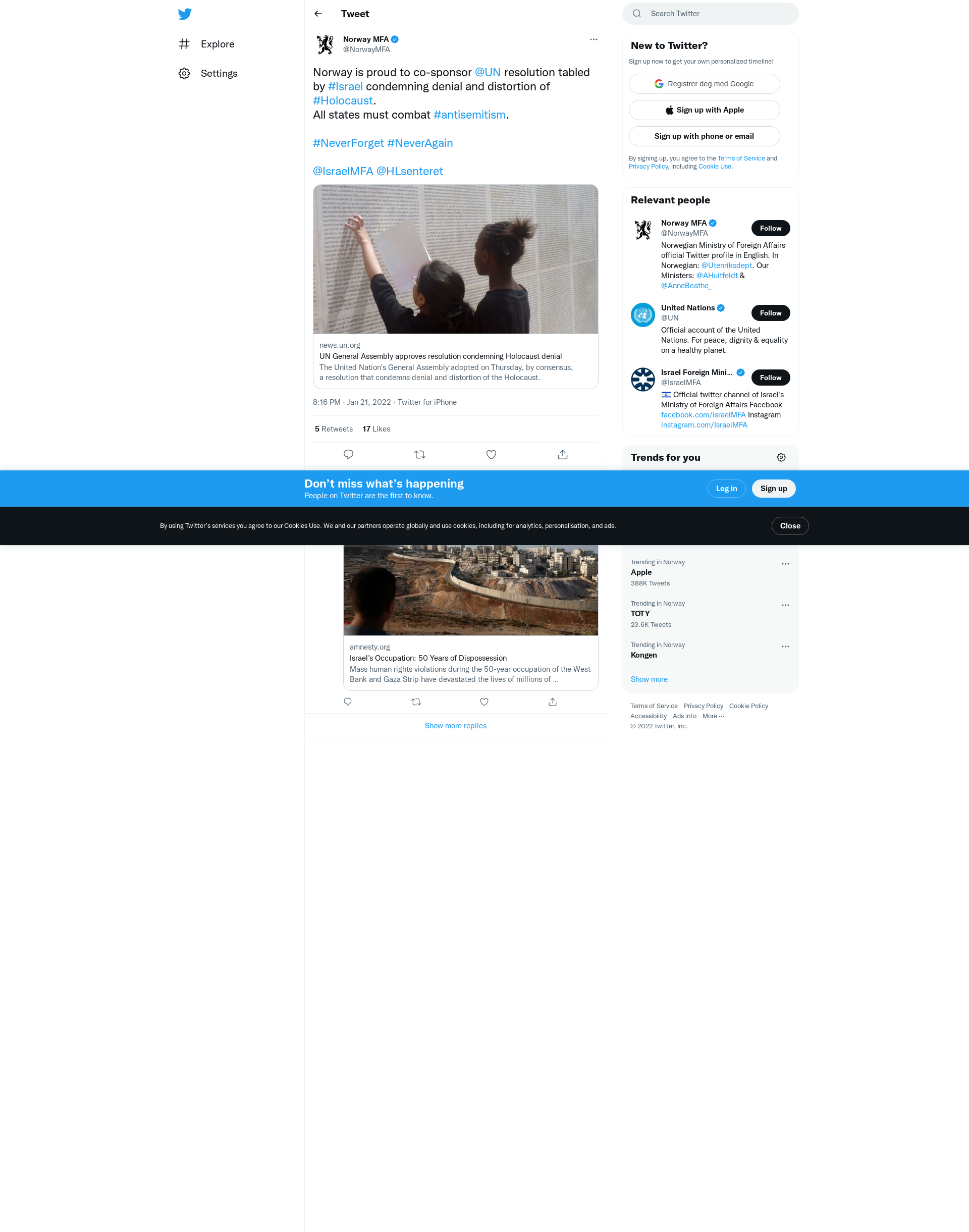 Norway is proud to co-sponsor @UN resolution tabled by #Israel condemning denial and distortion of #Holocaust. All states must combat #antisemitism. #NeverForget #NeverAgain @IsraelMFA @HLsenteret https://t.co/jD5nigBGUU
