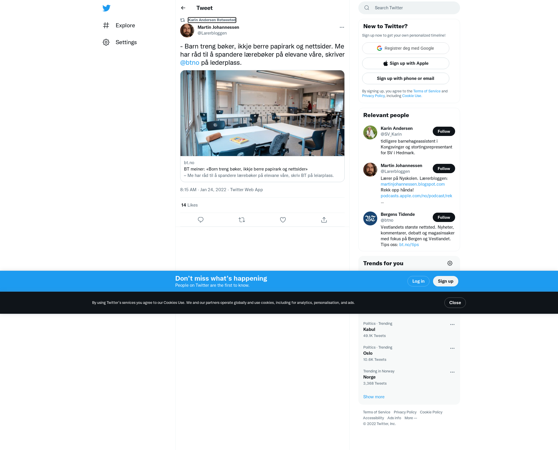 RT @Larerbloggen: - Barn treng bøker, ikkje berre papirark og nettsider. Me har råd til å spandere lærebøker på elevane våre, skriver @btno på lederplass. https://t.co/piR1sPTtHI