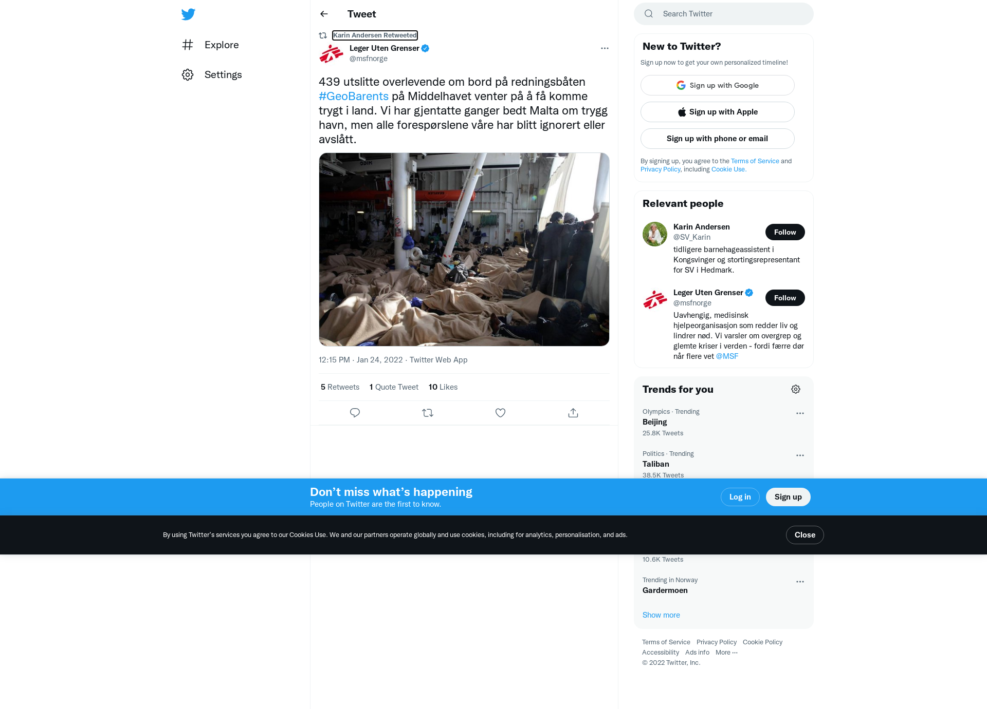 RT @msfnorge: 439 utslitte overlevende om bord på redningsbåten #GeoBarents på Middelhavet venter på å få komme trygt i land. Vi har gjentatte ganger bedt Malta om trygg havn, men alle forespørslene våre har blitt ignorert eller avslått. https://t.co/UfJE6Y5Wgf