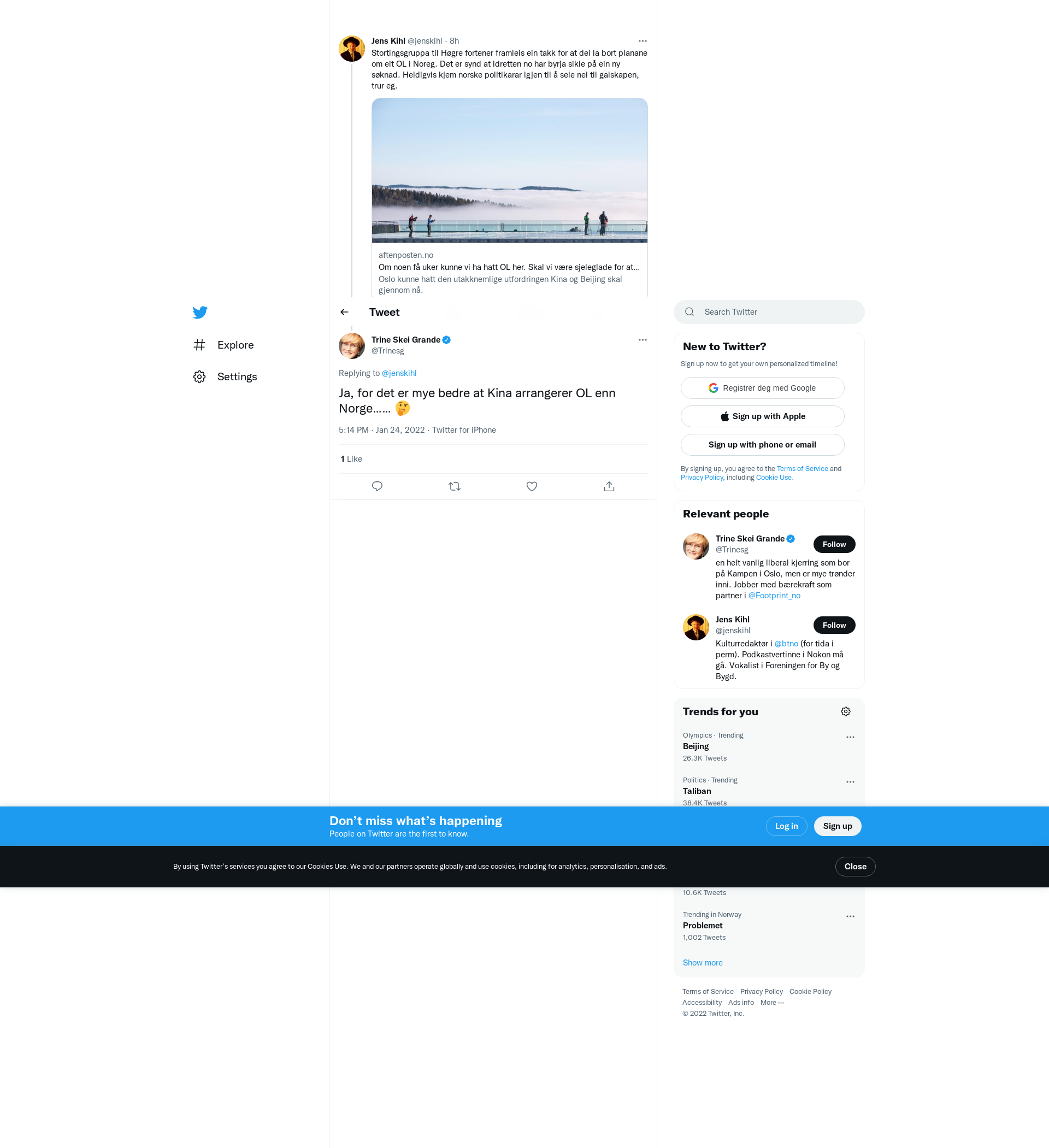 @jenskihl Ja, for det er mye bedre at Kina arrangerer OL enn Norge…… 🤔