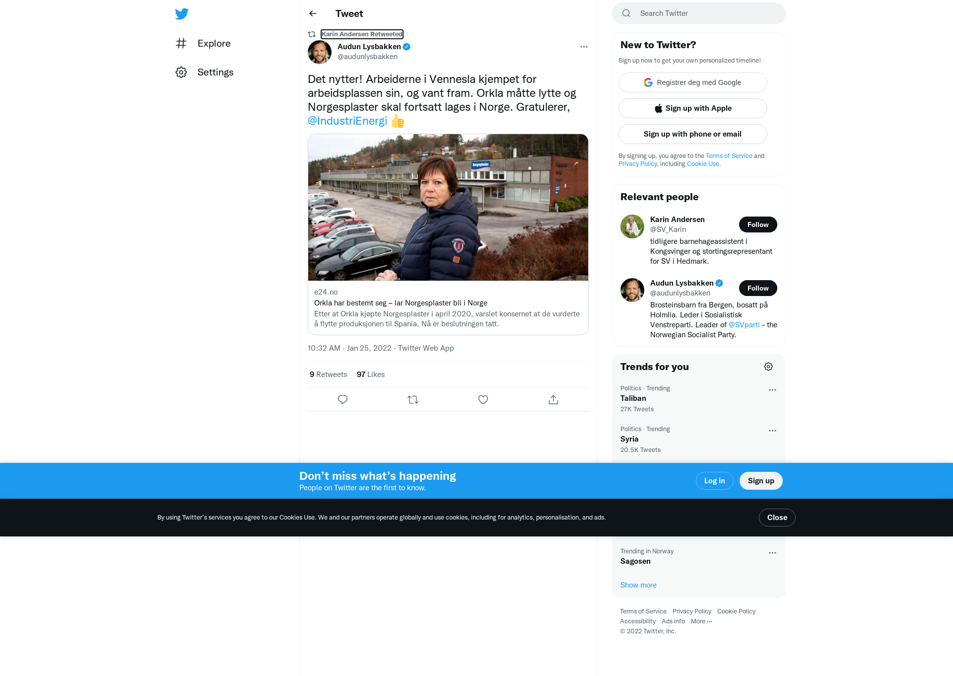 RT @audunlysbakken: Det nytter! Arbeiderne i Vennesla kjempet for arbeidsplassen sin, og vant fram. Orkla måtte lytte og Norgesplaster skal fortsatt lages i Norge. Gratulerer, @IndustriEnergi 👍 https://t.co/ZyTa8y6XoI