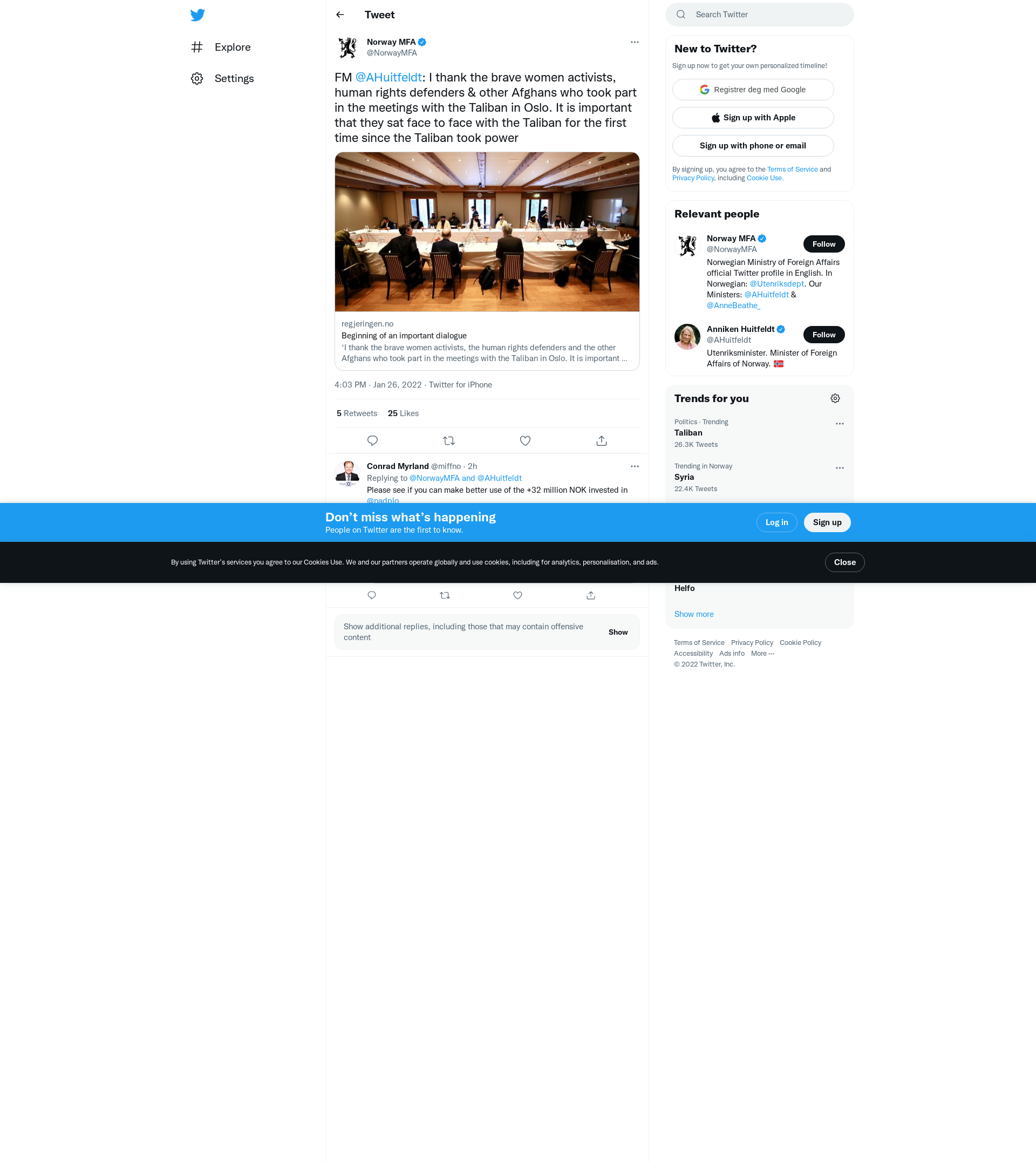 ‘I thank the brave women activists, the human rights defenders and the other Afghans who took part in the meetings with the Taliban in Oslo. It is important that they sat face to face with the Taliban for the first time since the Taliban took power. Th...