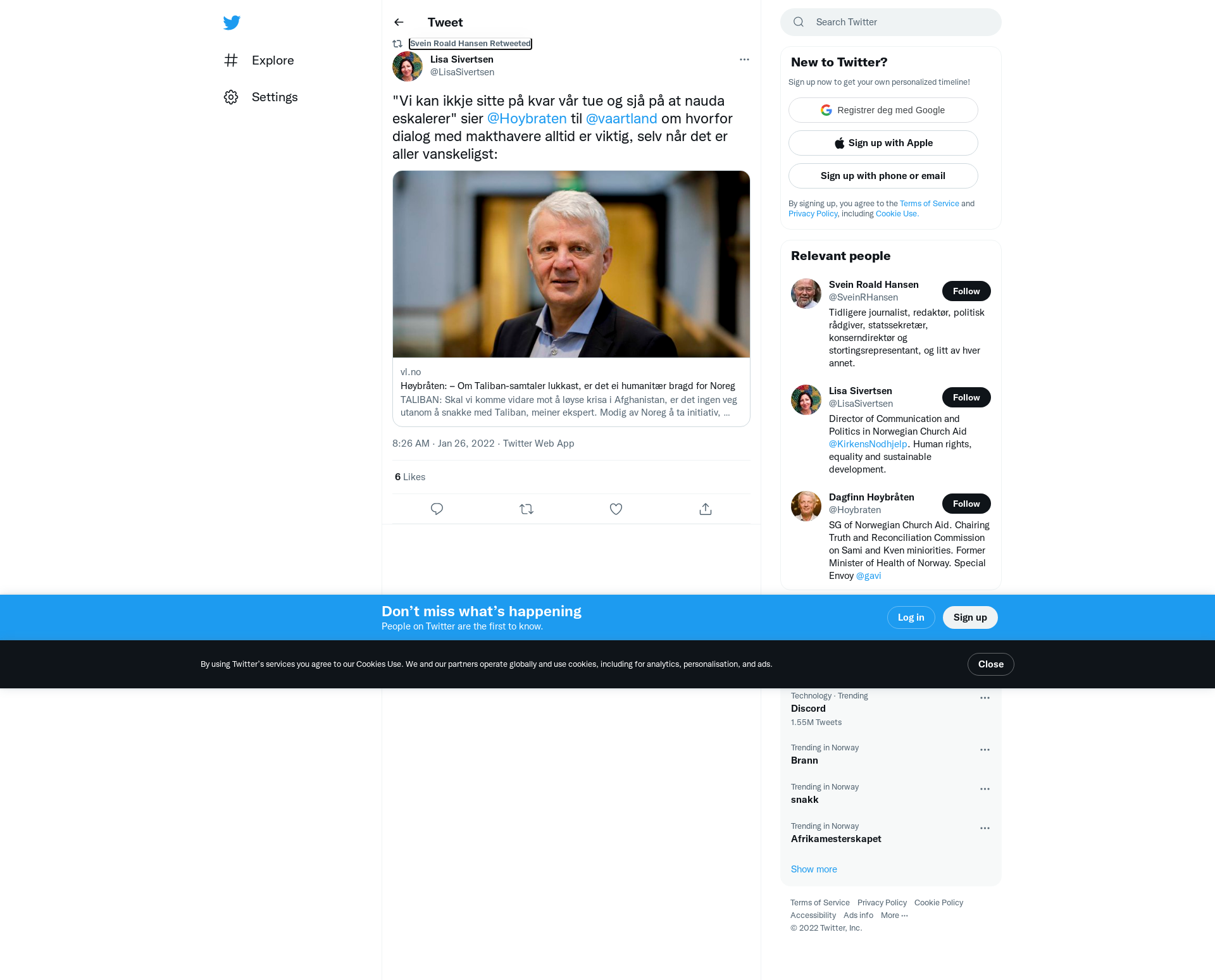 RT @LisaSivertsen: "Vi kan ikkje sitte på kvar vår tue og sjå på at nauda eskalerer" sier @Hoybraten til @vaartland om hvorfor dialog med makthavere alltid er viktig, selv når det er aller vanskeligst: https://t.co/vJF9Ldiqvn