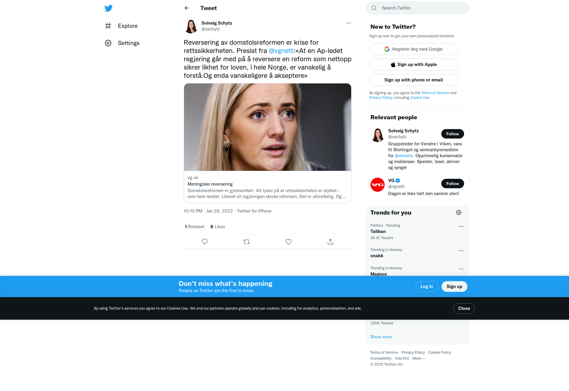 Reversering av domstolsreformen er krise for rettssikkerheten. Presist fra @vgnett:«At en Ap-ledet regjering går med på å reversere en reform som nettopp sikrer likhet for loven, i hele Norge, er vanskelig å forstå.Og enda vanskeligere å akseptere» https://t.co/3GpGSU06sQ