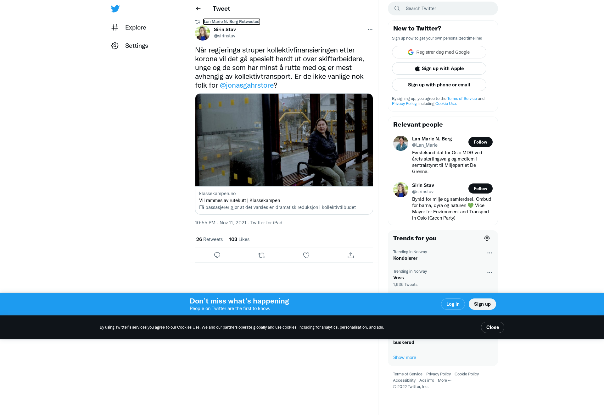 RT @sirinstav: Når regjeringa struper kollektivfinansieringen etter korona vil det gå spesielt hardt ut over skiftarbeidere, unge og de som har minst å rutte med og er mest avhengig av kollektivtransport. Er de ikke vanlige nok folk for @jonasgahrstore?\nhttps://t.co/PXGzlnbBZO