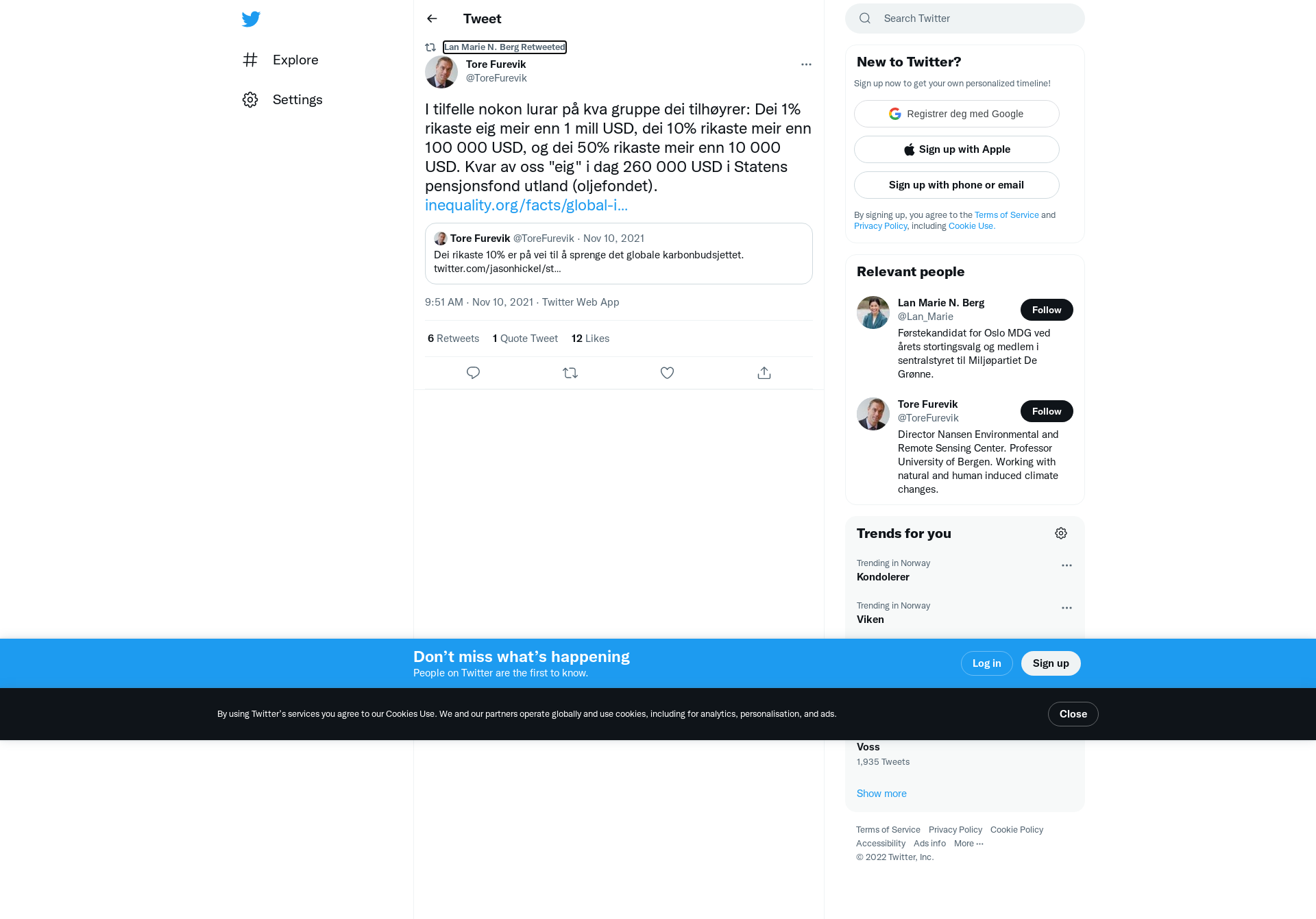 RT @ToreFurevik: I tilfelle nokon lurar på kva gruppe dei tilhøyrer: Dei 1% rikaste eig meir enn 1 mill USD, dei 10% rikaste meir enn 100 000 USD, og dei 50% rikaste meir enn 10 000 USD. Kvar av oss "eig" i dag 260 000 USD i Statens pensjonsfond utland (oljefondet). https://t.co/I4hM2osuxu