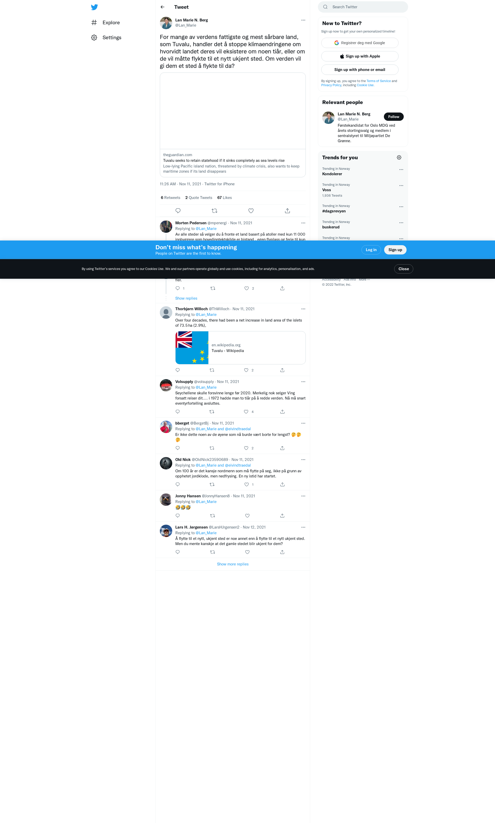 For mange av verdens fattigste og mest sårbare land, som Tuvalu, handler det å stoppe klimaendringene om hvorvidt landet deres vil eksistere om noen tiår, eller om de vil måtte flykte til et nytt ukjent sted. Om verden vil gi dem et sted å flykte til da? https://t.co/Wej0gLVez6