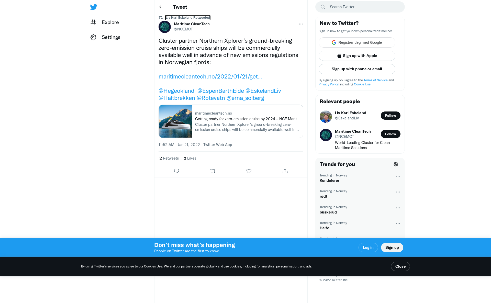 RT @NCEMCT: Cluster partner Northern Xplorer’s ground-breaking zero-emission cruise ships will be commercially available well in advance of new emissions regulations in Norwegian fjords:\n\nhttps://t.co/OpiYQnyOdZ\n\n@Hegeokland @EspenBarthEide @EskelandLiv @Haltbrekken @Rotevatn @erna_solberg