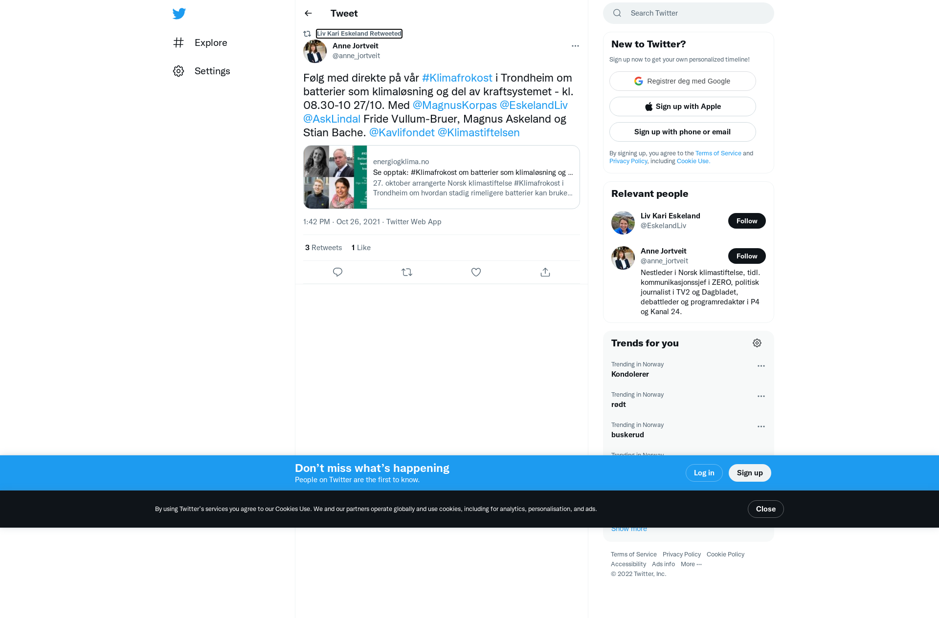 RT @anne_jortveit: Følg med direkte på vår #Klimafrokost i Trondheim om batterier som klimaløsning og del av kraftsystemet - kl. 08.30-10 27/10. Med @MagnusKorpas @EskelandLiv @AskLindal Fride Vullum-Bruer, Magnus Askeland og Stian Bache. @Kavlifondet @Klimastiftelsen https://t.co/NbRL2RLn8E