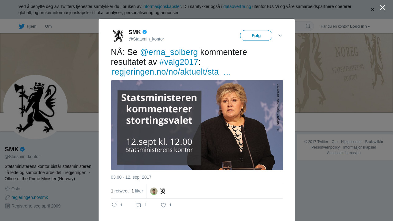 NÅ: Se @erna_solberg kommentere resultatet av #valg2017: https://t.co/QupXi8HYG9 https://t.co/XzXauxnEDC