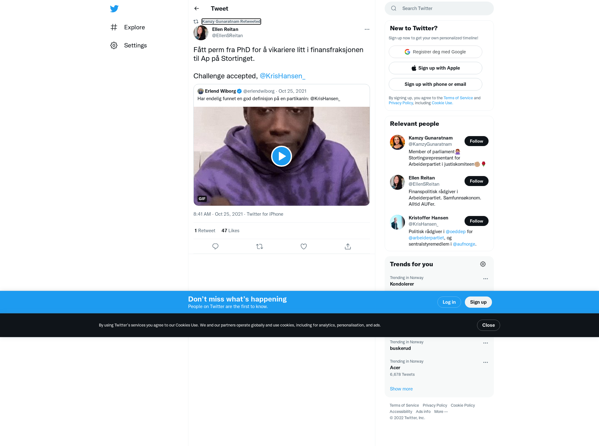 RT @EllenSReitan: Fått perm fra PhD for å vikariere litt i finansfraksjonen til Ap på Stortinget. \n\nChallenge accepted, @KrisHansen_