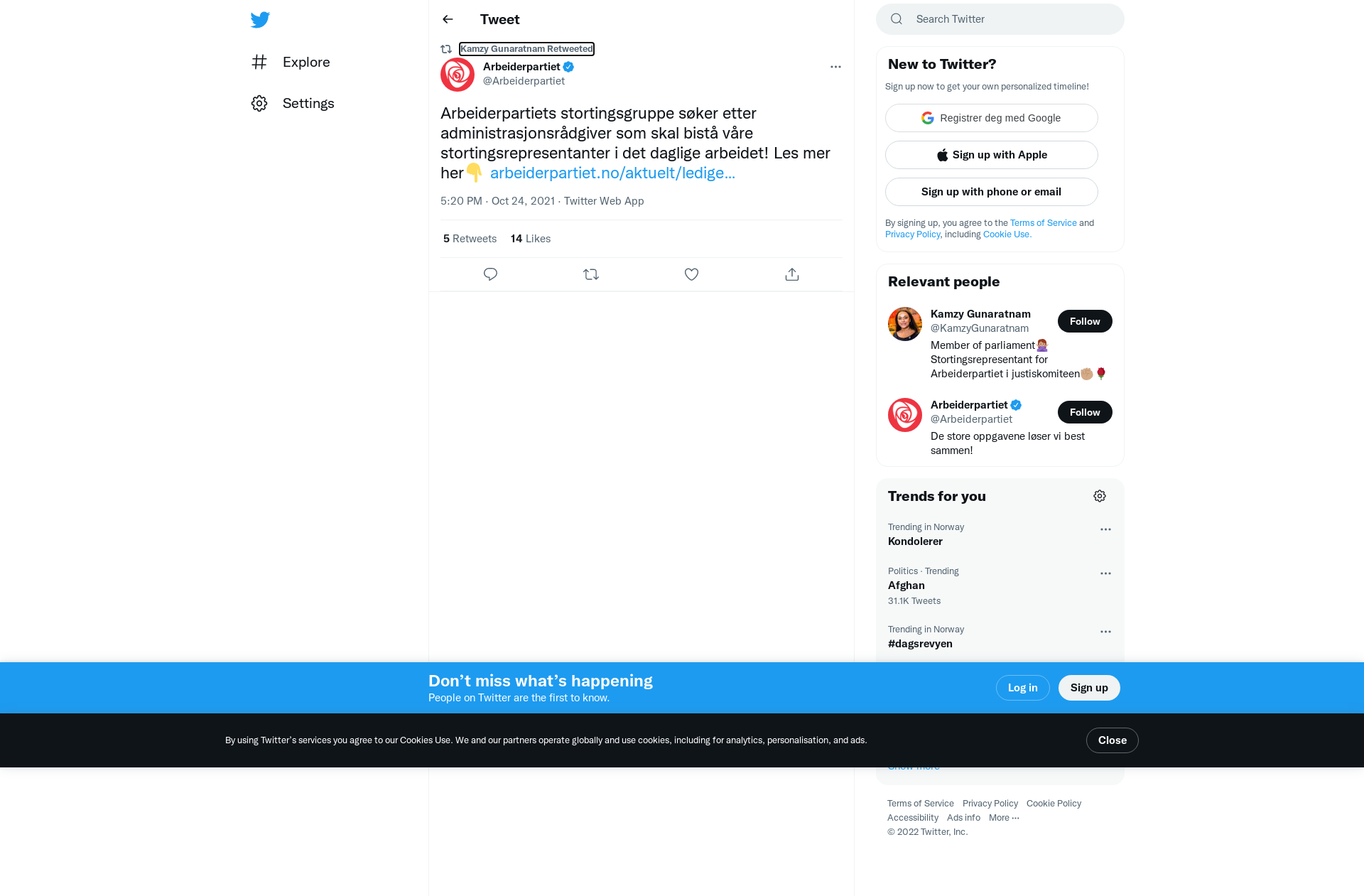 RT @Arbeiderpartiet: Arbeiderpartiets stortingsgruppe søker etter administrasjonsrådgiver som skal bistå våre stortingsrepresentanter i det daglige arbeidet! Les mer her👇 https://t.co/A8pumGlbyO